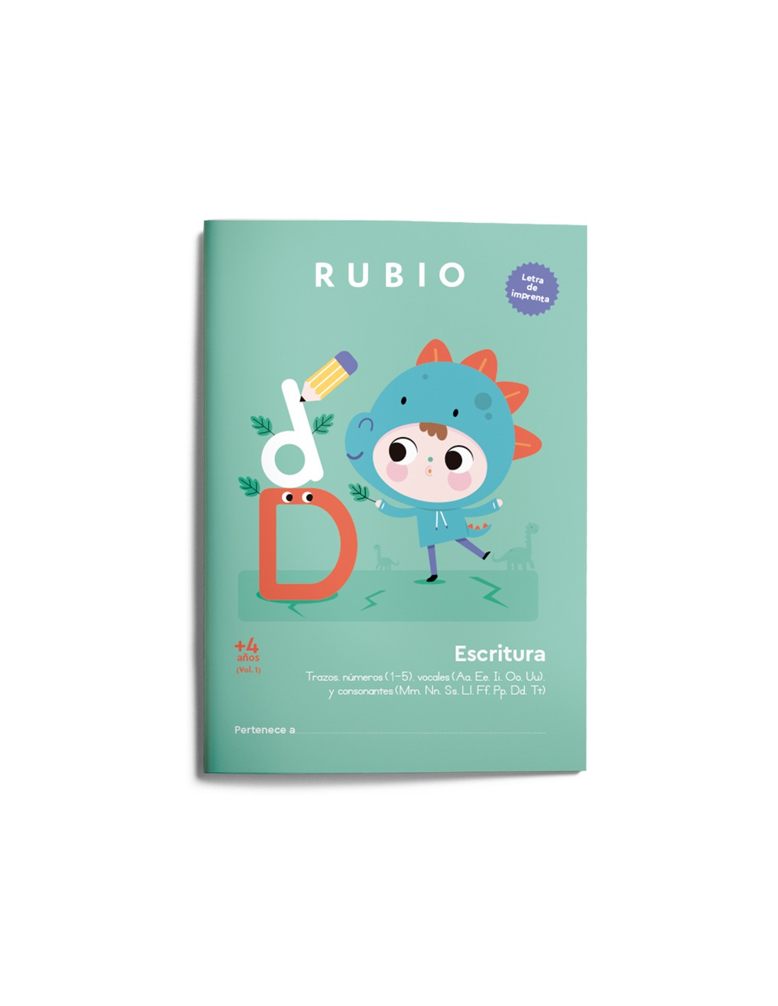 La colección Escritura con Letra de Imprenta RUBIO favorece, desde la etapa de infantil, el desarrollo de habilidades grafomotrices y de escritura atendiendo al nivel madurativo y evolutivo propio de cada edad. Los cuadernos presentan una secuencia progresiva de los contenidos, tanto en el grafismo (del trazo a la frase pasando por las letras, sílabas y palabras) como en la presentación de las letras (se presentan primero las de mayor uso en español). En Escritura con letra de imprenta (+4 años). Vol. 1 se trabajan las siguientes áreas: Grafomotricidad: ejercicios de trazos preparatorios para la escritura (rectos, curvos, alternos...) y actividades lúdicas de destreza manual y coordinación visomotora (despegar pegatinas, rasgar o recortar papel, rellenar siluetas, colorear). Actividades de conciencia fonológica, discriminación visual y atención: favorecen el reconocimiento fonético y gráfico de las letras, fundamental para la lectoescritura. Aprendizaje y trazado de letras: vocales por orden alfabético (Aa, Ee, Ii, Oo, Uu) y consonantes más habituales con un solo sonido (Mm, Nn, Ss, Ll, Ff, Pp, Dd, Tt). Autoevaluación: al final del cuaderno. Funciona como motivación y refuerzo del aprendizaje. Además, para fomentar que el aprendizaje sea también un juego, incluye: Adhesivos y recortables para la realización de las actividades. Póster con el alfabeto.