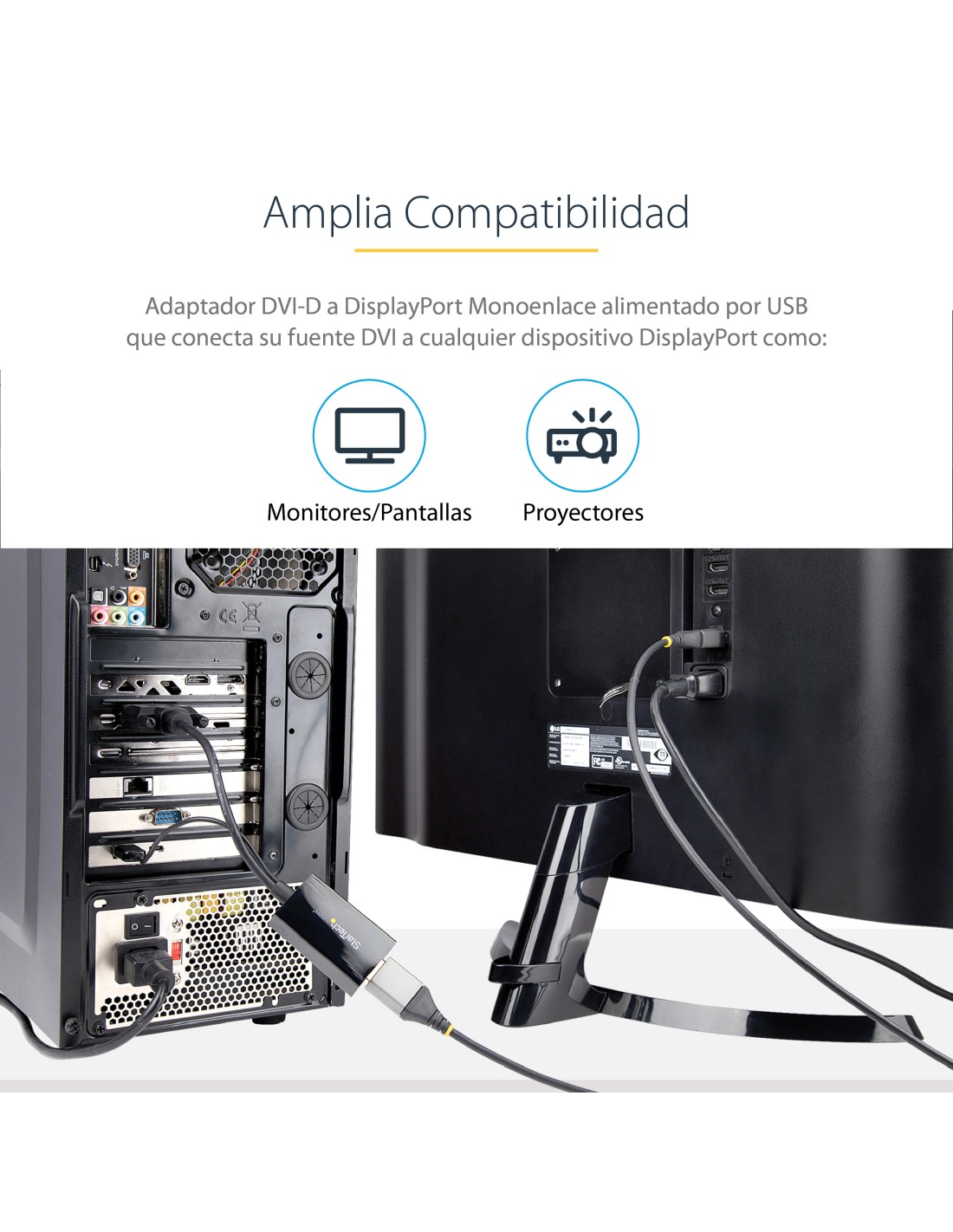 - Establezca un puente de compatibilidad entre su ordenador equipado con DVI y su monitor DisplayPort