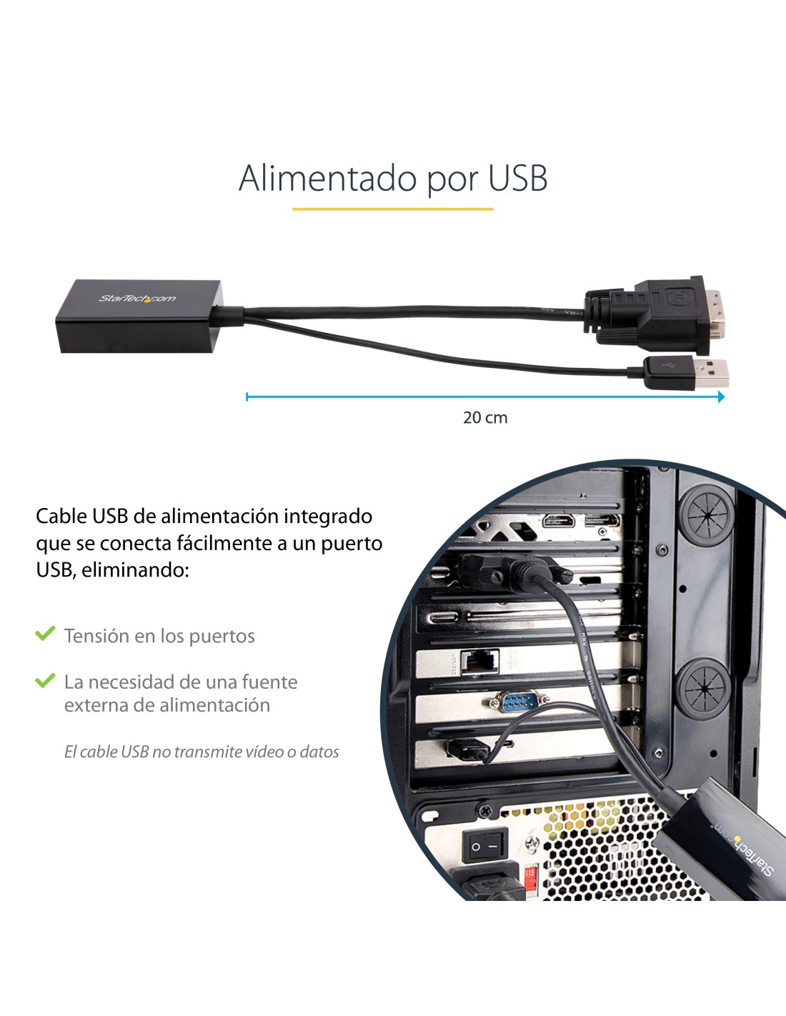 Adaptador DVI a DisplayPort Alimentado por USB - Conversor DVI a DisplayPort - Convertidor DVI-D a DP - 1920x1200