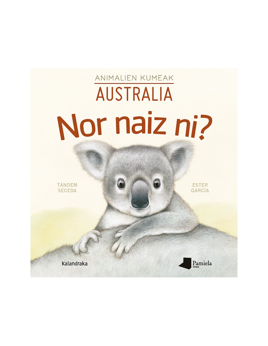 «Nor naiz ni Animalien kumeak» sailak planetako espezie harrigarrienak erakusten ditu kontinentez kontinente, haurrengan faunaren ezagutza eta natura zaintzeko ardura sustatzeko asmoz txikitatik. Liburuxka bakoitzak zazpi kume aurkezten ditu, eta, asmakizunetan bezalako pista soil batzuekin, animalia identifikatu beharko du haurrak. Hurrengo orrian aurkituko du erantzuna, eta baita animaliaren itxura, habitata, ohitura eta bitxikeriei buruzko informazio zabalagoa ere. Testu errazak dira, lehen pertsonan idatziak. Horrela, animalia bakoitzak elkarrizketa zuzen eta aktiboa du irakurlearekin. Ilustrazioak, berriz-grafitoz eginak, leunki koloreztatuak-, errealistak eta detaile handikoak dira. Kumeen erretratu adierazkor eta eztiak haien familien eta kidekoen bizitokiaren irudiekin batera datoz. Hala, alderdi narratiboak eta bisualak elkar osatzen dutela, erreferentziazko materiala eratzen dute, ez soilik eskola eta liburutegietarako, baita etxean partekatzeko ere. Mapatxea, tukana, armadiloa, jaguarra, nagia, bikuina eta larre-txakurrak dira Amerikan girotutako bolumenaren protagonistak. Eta Australiakoan: kangurua, koala, kukaburra, ornitorrinkoa, ekidna, Tasmaniako deabrua eta petauroa. Batzuk desagertzeko arriskuan daude: ehiza, espezieen legez kanpoko trafikoa eta kutsadura haurrek ezagutu beharreko mehatxuak dira, haurtzarotik ingurumena eta animaliak errespetatzearen garrantziaz jabetzeko.