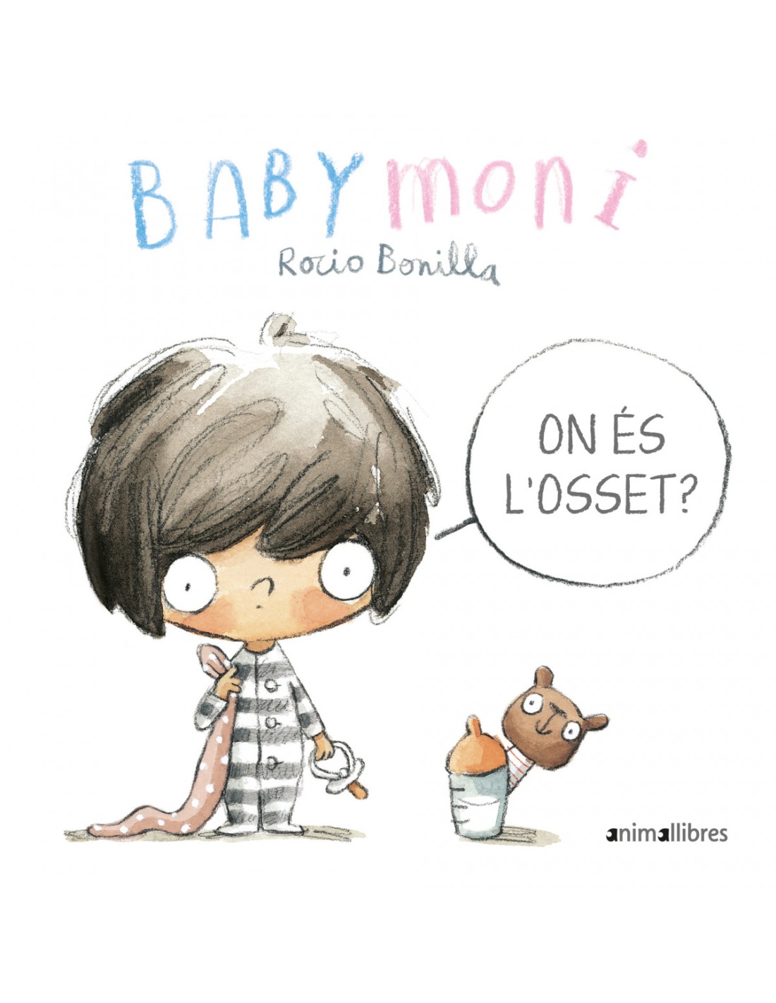 La Babymoni s'ha banyat, s'ha pres el bibe i ja està a punt per anar a dormir. Per. li falta alguna cosa. L'osset! On deu ser? Ajuda la Babymoni a trobar-lo i... bona nit!