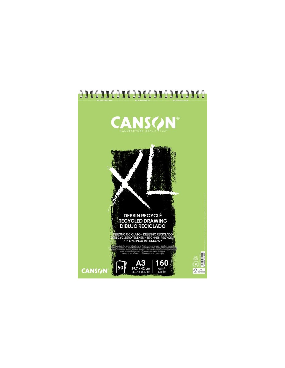 bloc dibujo Canson XL reciclado A3 50 hojas 160 gramos