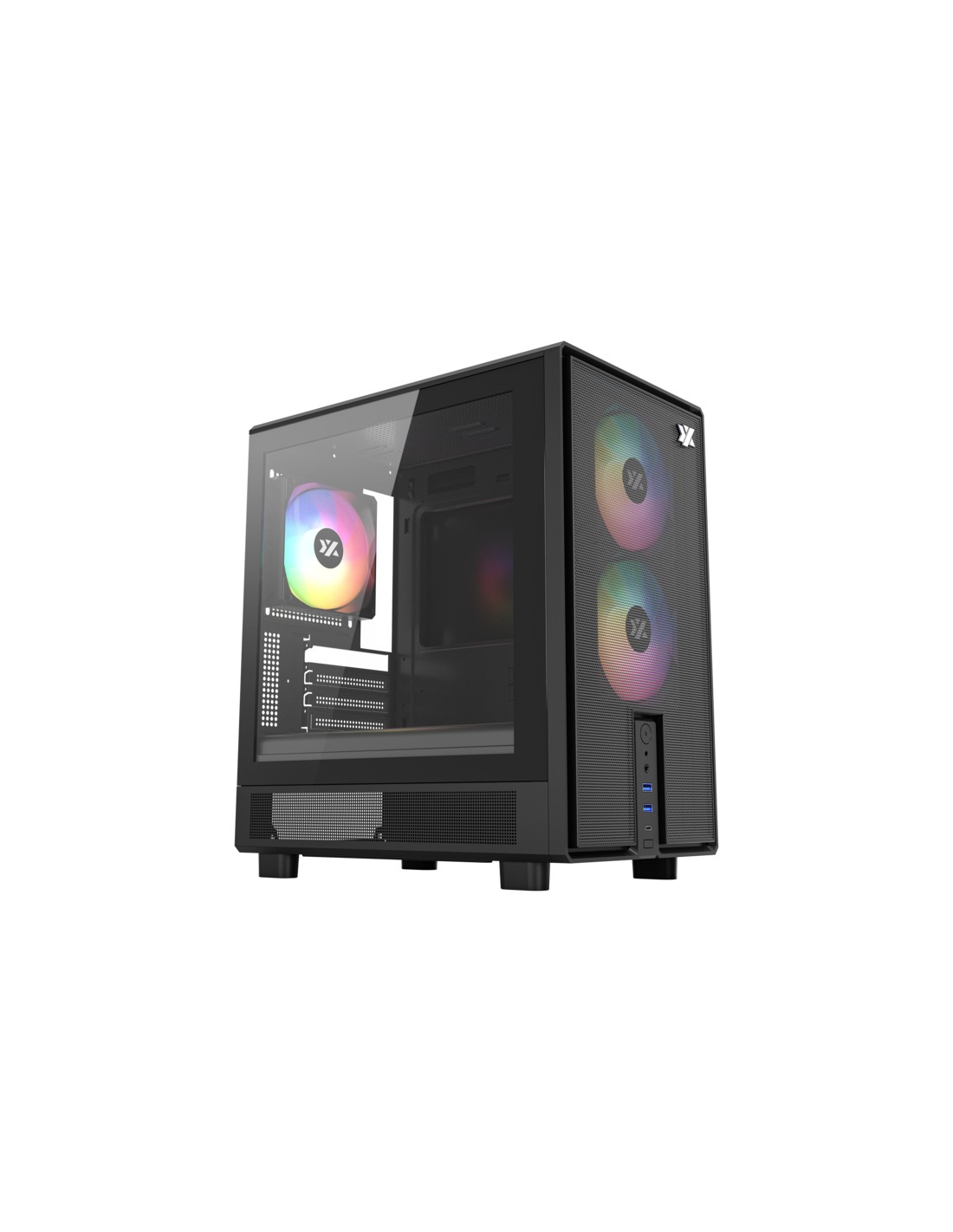 XYZ ATOM, Cristal Templado, Malla, 3x Pulsar 120mm A-RGB, PWM, Tipo C, M-ATX, Negra