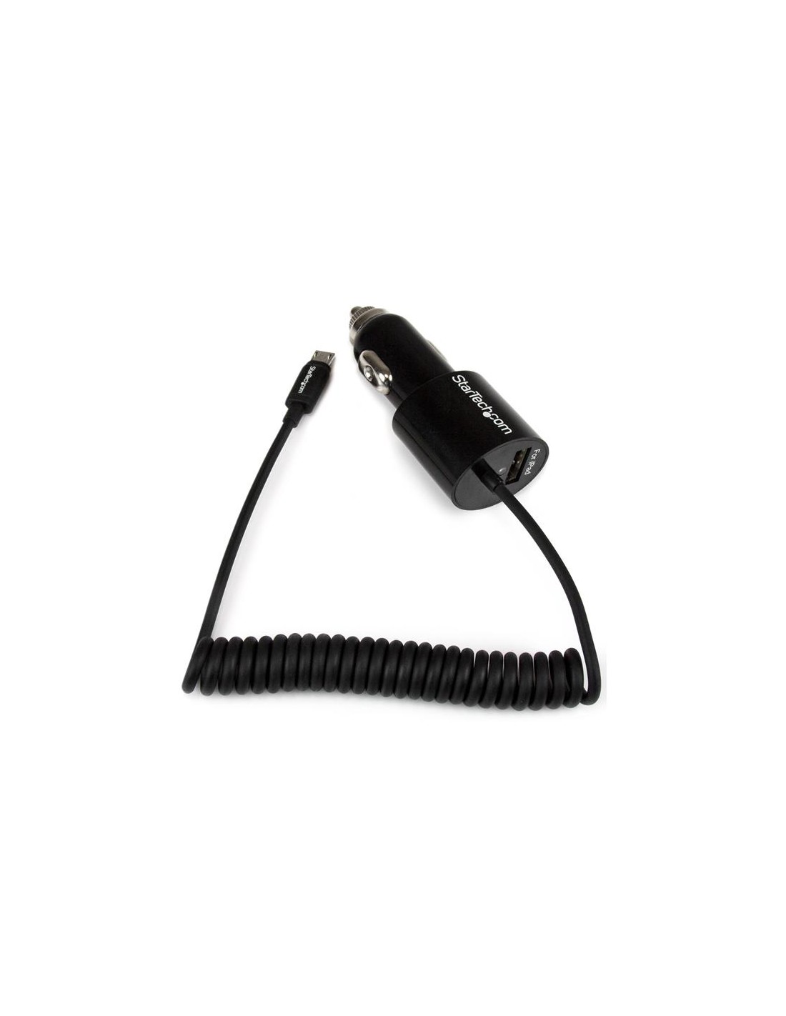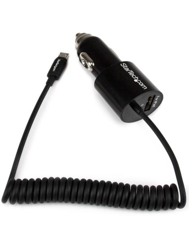 Cargador USB de 2 Puertos para Coche con Cable Micro USB y puerto USB - Negro