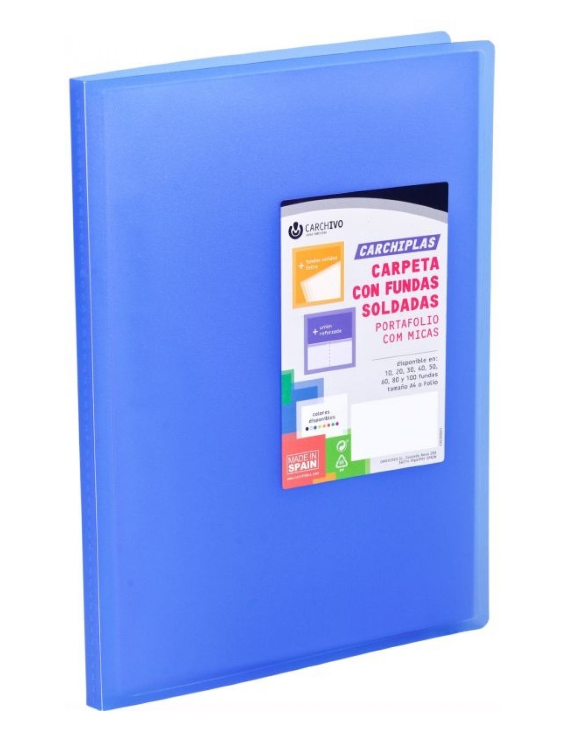 Carpeta 30 fundas soldadas a4 tapa flexible color azul carchivo
