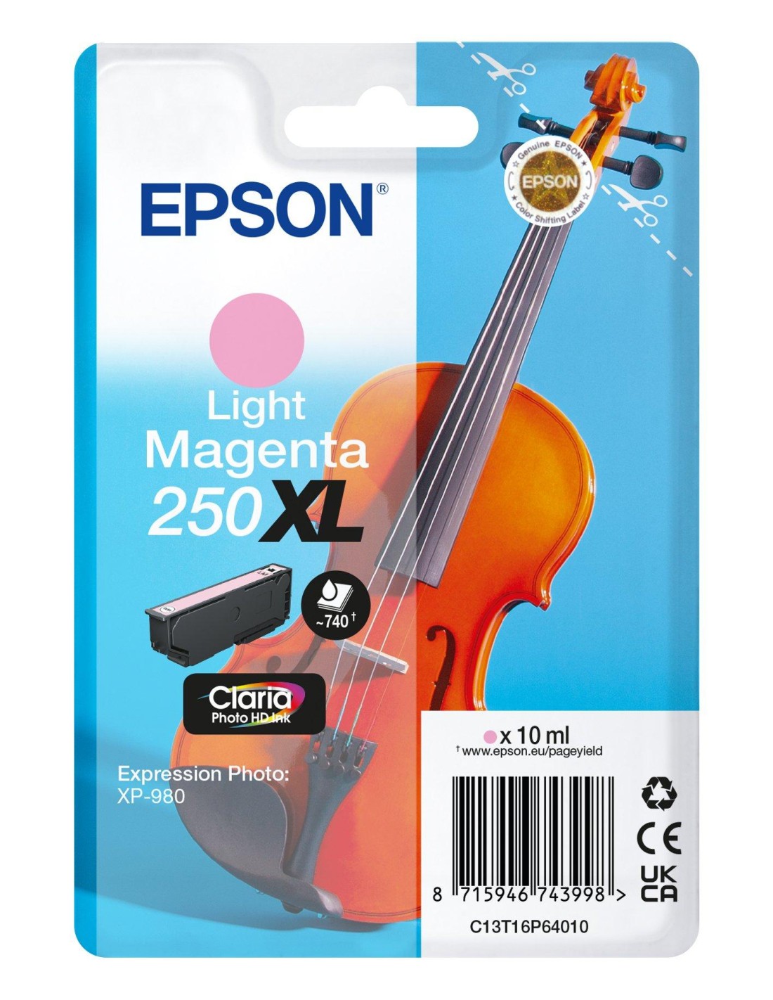 250XL Violin Claria Photo HD cartucho de tinta 1 pieza(s) Original Alto rendimiento (XL) Magenta claro