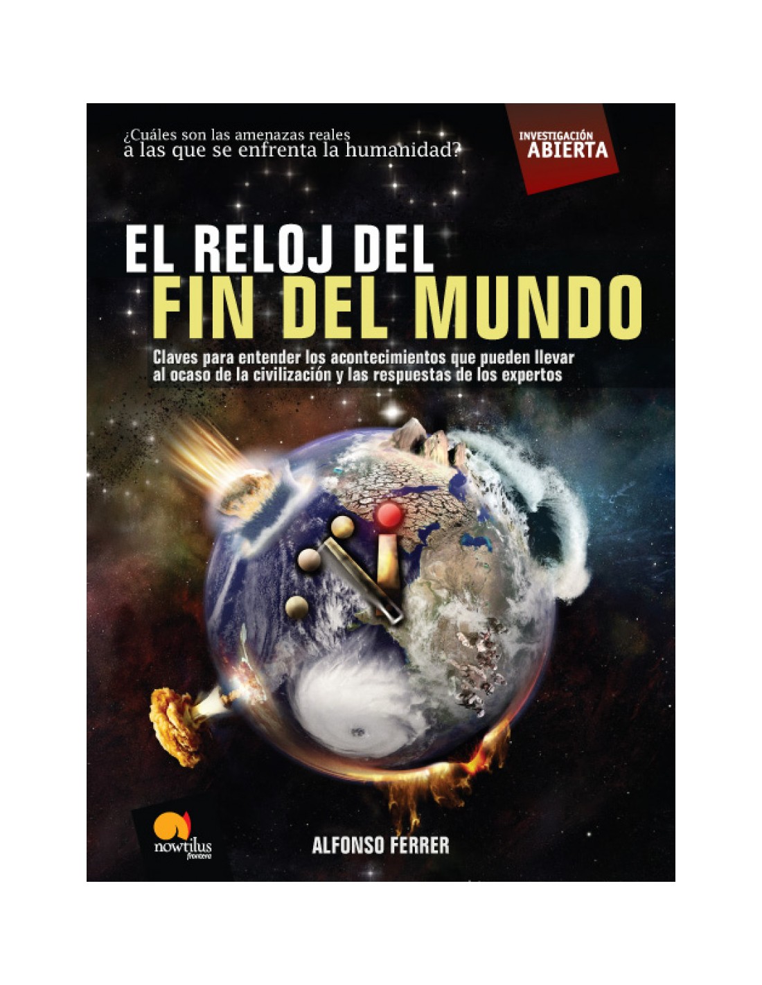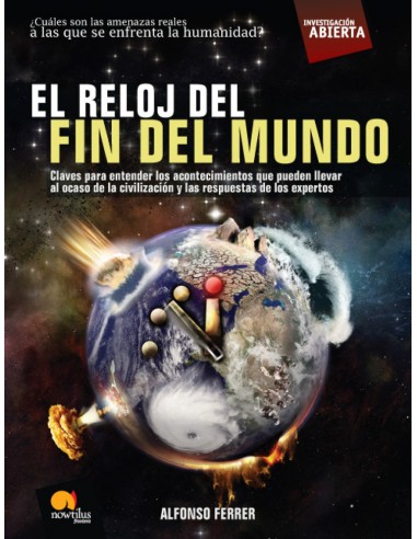 En este libro, Alfonso Ferrer, aborda con lucidez y claridad los temas más relevantes sobre el posible final de nuestros días. Se detiene en revisar las profecías de Nostradamus y San Malaquías, para después volcar la atención en amenazas más reales y concretas.(http://www.feriachilenadellibro.cl) "Es cierto que la ciencia está avanzando, pero no podemos confiarlo todo a los que son considerados los nuevos salvadores del mundo. El autor realiza estas advertencias, a la vez que propone las medidas a tomar antes de que sea demasiado tarde."(http://megustan-loslibros. blogspot.com.es) "Profecías, antiguos textos cristianos, avances científicos, guerras y crisis económica, son algunos de los ingredientes que se barajan para que el simbólico reloj que marca la cercanía o lejanía del fin del mundo, adelante o retrase su inquietante minutero."(http://www.angulo13.com) El fin del mundo parece estar cada vez más cerca: enfermedades, la amenaza nuclear, tsunamis y terremotos y un extraño reloj que nos avisa de que estamos a cinco minutos del apocalipsis. En 1947, tras la hecatombe nuclear y la pérdida de vidas sin precedentes que provocó la Segunda Guerra Mundial, científicos de la Universidad de Chicago, entre los que había muchos del Proyecto Manhattan idearon un reloj que calculaba lo que a la vida de quedaba: la medianoche era el fin del mundo. Ese reloj se detuvo en 2007 a 5 minutos para la medianoche pero eso no quiere decir que la amenaza haya terminado, eso es lo que indaga El reloj del fin del mundo: el cambio climático, la superpoblación, el efecto invernadero, la proliferación de armas nucleares o el meteorito que en 2036 puede colisionar con la Tierra son algunas de las causas que pueden provocar la desaparición de la vida tal y como la conocemos. Pero la obsesión por el fin del mundo se remonta al nacimiento mismo de la civilización. Divide la obra Alfonso Ferrer en dos partes. En la primera de ellas realiza una investigación histórica, antropológica y religiosa con el fin de demostrar que el triunfo de las religiones monoteístas trae asociada una idea lineal del tiempo y, con ella, nacen las hipótesis sobre el fin de los días. En esta parte aparecerán Nostradamus, San Malaquías o los textos bíblicos del Apocalipsis. En la segunda, el trabajo es una investigación periodística y científica sobre las probabilidades de que se den las múltiples amenazas para la humanidad que el autor detalla en el libro, alguna de ellas tan exóticas como la progresiva reducción de los telómeros en las sucesivas generaciones, un microagujero negro creado en el CERN o la tan tratada revolución de las máquinas. Razones para comprar la obra: - Analiza el fin del mundo desde todos sus ángulos: desde los datos científicos, desde el impacto social pero también desde un enfoque histórico y antropológico. - La información que se da en el libro es fruto de la investigación de textos científicos pero también de entrevistas con académicos y expertos en los diversos temas tratados. - La obra es totalmente actual no sólo porque los datos nos traen hasta este momento sino porque se pueden encontrar analogías entre las profecías antiguas y ciertos acontecimientos actuales. - Es un libro que nos informa de un modo ameno y sencillo de todas las amenazas a las que se enfrenta el hombre en la actualidad. Es un libro que, a pesar del tema, huye del catastrofismo, pues las posibilidades son exploradas de un modo riguroso y nos habla de la evolución de la tecnología y de la posibilidad de consenso entre los hombres para evitar los distintos cataclismos. Para comenzar a leer la obra: www.book2look.es/boo k/9788497635660