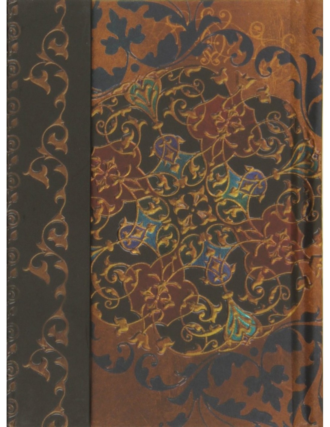 Um caderno para anotaçäes importantes em pginas com linhas, capas em relevo e uma aba castanha para fechar. Inclui uma bonita fita para marcar onde vai.