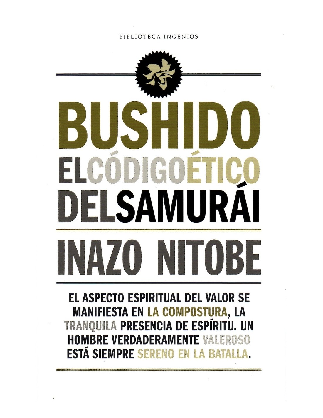 Japón, que a mitad del siglo XIX era un pequeño país feudal en completo aislamiento, vencía al Imperio ruso a principios del XX y pocos años después se convertía en una gran potencia mundial. ¿Cómo fue posible esa evolución? El secreto estaba en la disciplina y concentración del bushido, el alma del Japón. Bushido es “el camino del guerrero”, el estricto código de conducta de los bushi o samuráis, que exigía lealtad y honor hasta la muerte. Inazo Nitobe escribió este libro en ingles y lo público en Estados Unidos en 1905 para explicar a Occidente ese código no escrito. En sus páginas hablo de rectitud, coraje, benevolencia, cortesía, veracidad, honor y lealtad, y lo hizo de tal manera que cautivo no solo a los extranjeros, sino también a sus compatriotas.