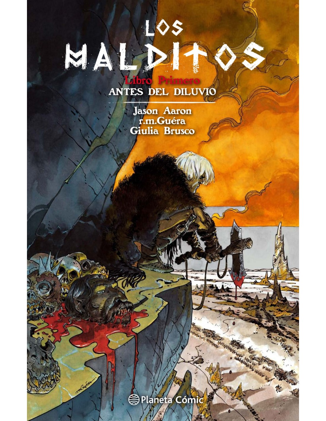 Han pasado 1655 años desde el Edén, y la vida en la Tierra se ha ido al infierno. El mundo del hombre es un lugar repleto de depravaciones y crueldades desenfrenadas. Por sus páramos vagan monstruos prehistóricos y saqueadores de la Edad de Piedra. La muerte y la destrucción se han convertido en el pan nuestro de cada día. La humanidad es un experimento fallido. Así es la vida antes del Diluvio. He aquí al hombre, al borde de su primer apocalipsis. Bienvenidos al mundo de LOS MALDITOS. Tras conmocionar el género negro con Scalped, esta nueva serie regular vuelve a reunir al guionista Jason Aaron con el dibujante R.M.Guéra en un noir bíblico seco y brutal.