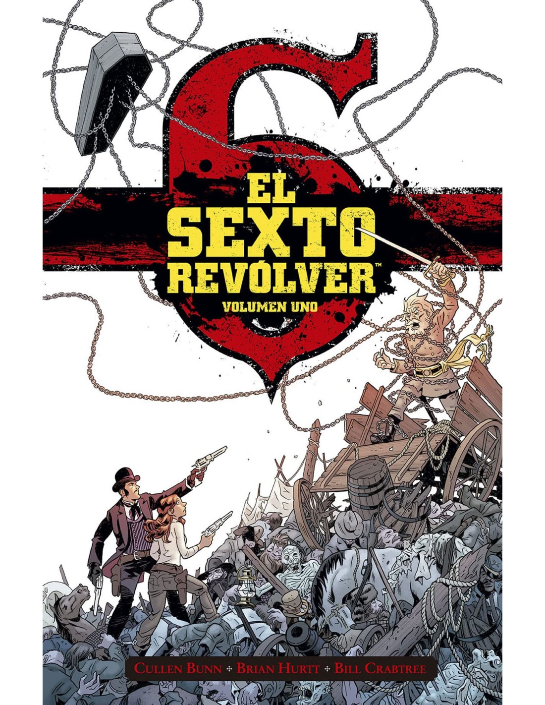 EL GRAN WESTERN FANTÁSTICO DE AVENTURAS DE CULLEN BUNN POR FIN PUBLICADO EN ESPAÑA Durante los peores momentos de la Guerra Civil Americana, seis revólveres con poderes místicos cayeron en manos de los más crueles de los matones. Con el tiempo, el Sexto Revólver, la más peligrosa de esas armas, desaparecióà para reaparecer y caer en manos de una joven inocente. Despiadados villanos a los que se creía muertos hace tiempo reaparecerán decididos a hacerse con el revólver y asesinar a su nueva dueña. Solo Drake Sinclair, un pistolero con un mis terioso pasado, se atreverá a interponerse en su camino. Pero los revólveres son poderosos y su destino terrorífico. Por fin en castellano llega la obra que encumbró a Cullen Bunn y Brian Hurtt recopilada en 6 volúmenes integrales llenos de acción y terror.