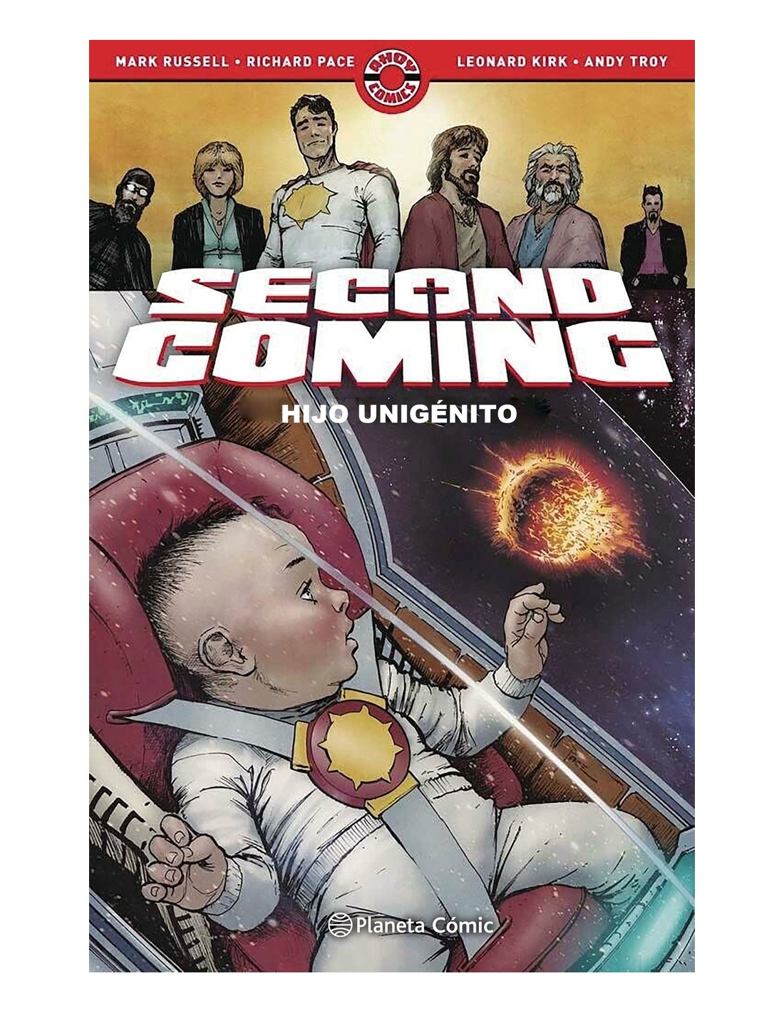 Mientras el superhéroe Sunstar espera ser padre, se atormenta al pensar en cómo puede usar sus poderes, y si debe utilizarlos, para hacer del mundo un lugar mejor para su hijo. Y mientras Jesucristo pierde su habitación, convertida en el cuarto de los niños, se esfuerza por encontrar un nuevo lugar en una sociedad que distorsiona y explota su mensaje con ánimo de lucro. Una exploración sorprendentemente sutil y sensible de la fe, el culto a los héroes y la forma en que ambos existen en la actual cultura popular, todo ello insertado en una dispareja comedia de amigos que también ofrece una de las representaciones más inesperadas de Dios que uno pueda llegar a imaginar".THE HOLLYWOOD REPORTER" El muy esperado segundo volumen de la serie que ComicsBeat denominó "el cómic más peligroso del mundo, y el más adorable". Editorial original: Ahoy comics.