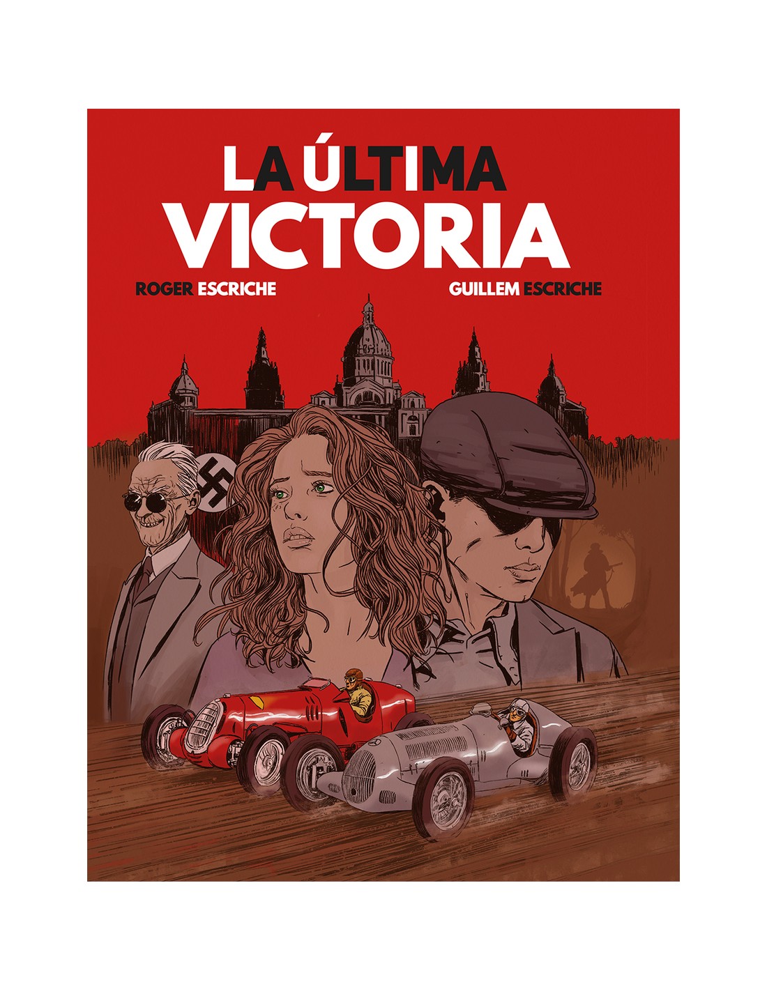 A unas semanas de que estallase la Guerra Civil tuvo lugar en Barcelona el GP Penya Rhin, competición estrella de las carreras automovilísticas. Una carrera en la que participaban escuderías como Alfa Romeo, Mercedes, Bugatti o Auto Union. Tanto para el gobierno de Benito Mussolini como el de Adolf Hitler, el resultado entrañaba un componente propagandístico que no se podía soslayar. Al mismo tiempo, Barcelona había acogido a multitud de disidentes de la Alemania nazi. Entre los más organizados se encontraban los miembros del Grupo DAS (Gruppe Deutsche Anarcho-Syndikalisten), enfrentados a vida o muerte con la Gestapo que trataba de eliminarlos o deportarlos. Este álbum, dibujado por Guillem Escriche (coautor del éxito internacional El partido de la muerte, publicado en varios idiomas) y escrito por el periodista Roger Escriche, recrea la formidable competición automovilística que tuvo lugar en el circuito de Montjuïc y, en paralelo, plantea, mediante un tour de force narrativo que juega y comprime el tiempo, la lucha entre alemanes, nazis y opositores, en la Ciudad Condal. Álbum ganador del II Concurso de Novela Gráfica Ajuntament de Paterna.