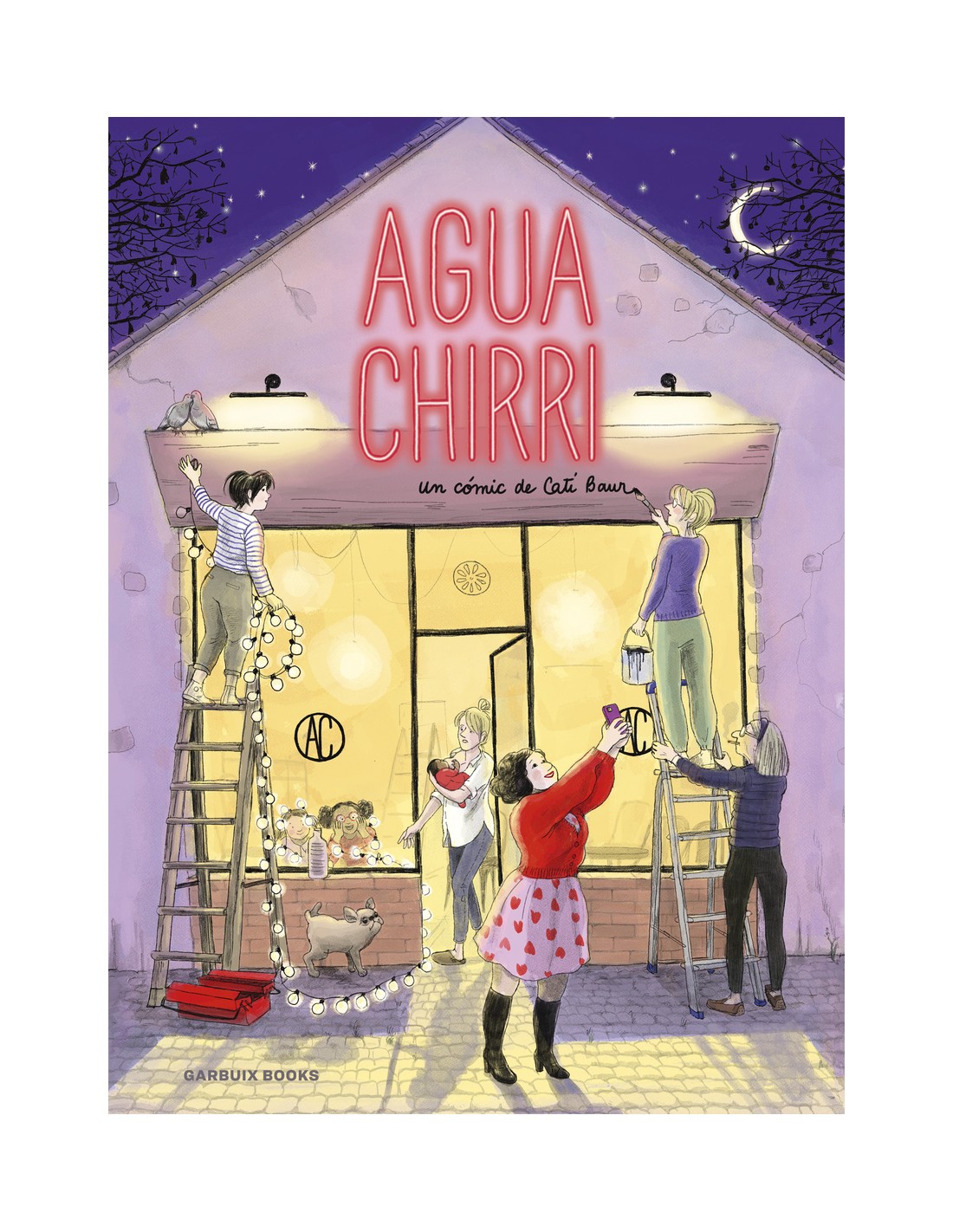 Durante una fiesta de cumpleaños, Marie, Nora, Camille y Marthe, cuatro amigas de toda la vida que rondan la cuarentena, hacen planes para el futuro: mientras un malhumorado camarero les niega una tisana, se imaginan un local de usos mixtos que serviría cervezas además de «aguachirri», y que también sería una librería... ¡Su cafetería se llamára Aguachirri! Cati Baur imagina su camino sembrado de trampa y retos, mientras retrata a mujeres muy de nuestro tiempo que se enfrentan a múltiples contratiempos: las paredes de su bar sirven de urinario a todo el vecindario... Una comedia para sentirse bien que evoca las obras de Posy Simmonds y mezcla ingeniosamente cuatro trayectorias vitales, ¡todas ellas hermanadas por la sororidad!