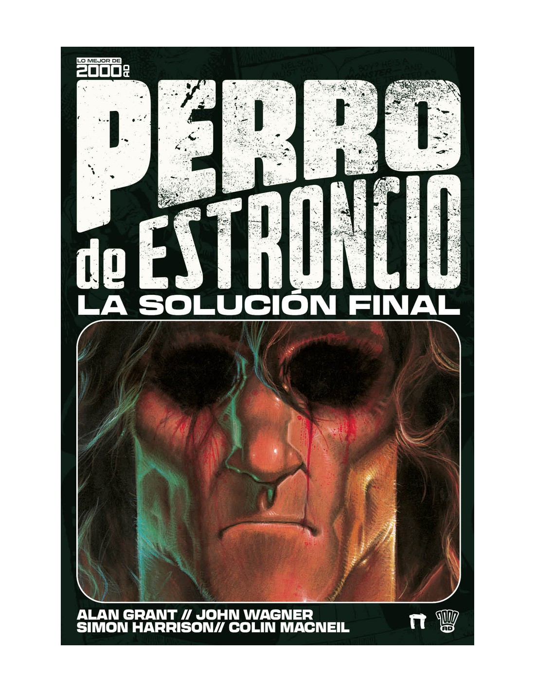 Se busca vivo... ¡o muerto! Los líderes fanáticos de la Nueva Iglesia han llegado a la última fase de su estrategia totalitaria: aplicar la Solución Final a la población mutante. Acorralados en guetos e indefensos, Lord Sagan y su secta de fundamentalistas ofrecen a los mutantes una huida a una dimensión alienígena, donde les espera una utopía, la tierra prometida. Sin embargo, en esta tierra prometida tanto Perro de Estroncio como los exiliados solo encontrarán la muerte. Inédito en España hasta la fecha, este volumen constituye una de las historias más clásicas y definitivas del personaje creado por John Wagner y Carlos Ezquerra. Perro de Estroncio abraza su destino final, en una aventura traumática firmada por Alan Grant (Juez Anderson: Shamballa), Colin MacNeil (Juez Dredd: América) y Simon Harrison (2000 AD). Además, estas páginas también incluyen varias historias cortas, incluido un inolvidable mano a mano entre Perro de Estroncio y el Juez Dredd. "El sombrío punto de no retorno de la serie de Perro de Estroncio que no dejó indiferente a ningún lector". Barsen Sánchez (Campamento Krypton, Atom Cómics)