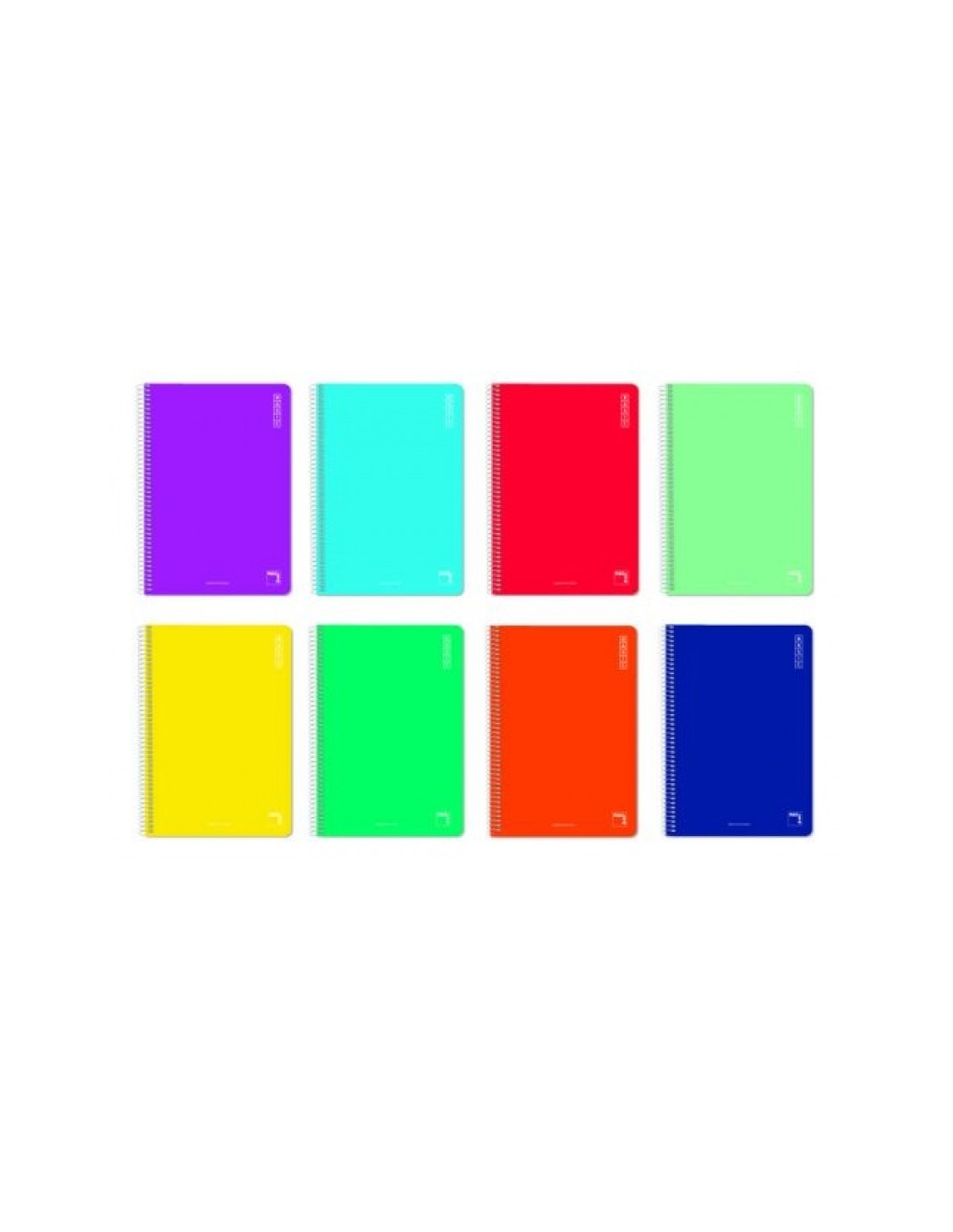 Cuadernos lisos tamaño folio de colores con 80 páginas de papel de 60 gramos.
