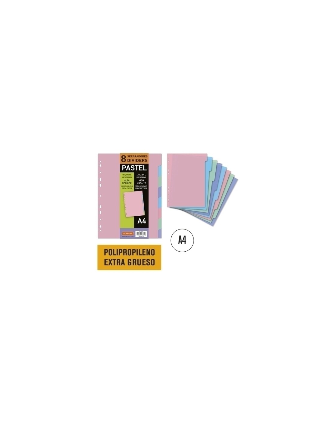SEPARADORES SENFORT PP PASTEL A4 - Pack de 10 unidades