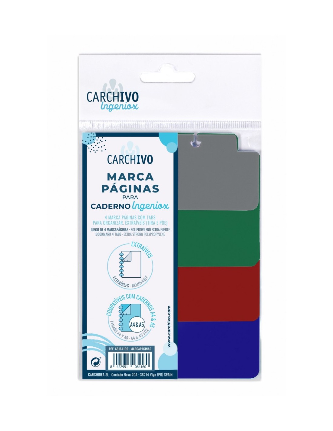 INGENIOX divisor Cartón, Polipropileno (PP) Azul, Verde, Gris, Rojo 4 pieza(s)