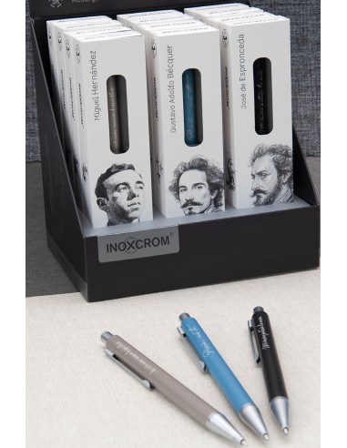 Exp 12 boligrafo books poetas inoxcrom + punto lectura Béquer, Espronceda y Miguel Hernández