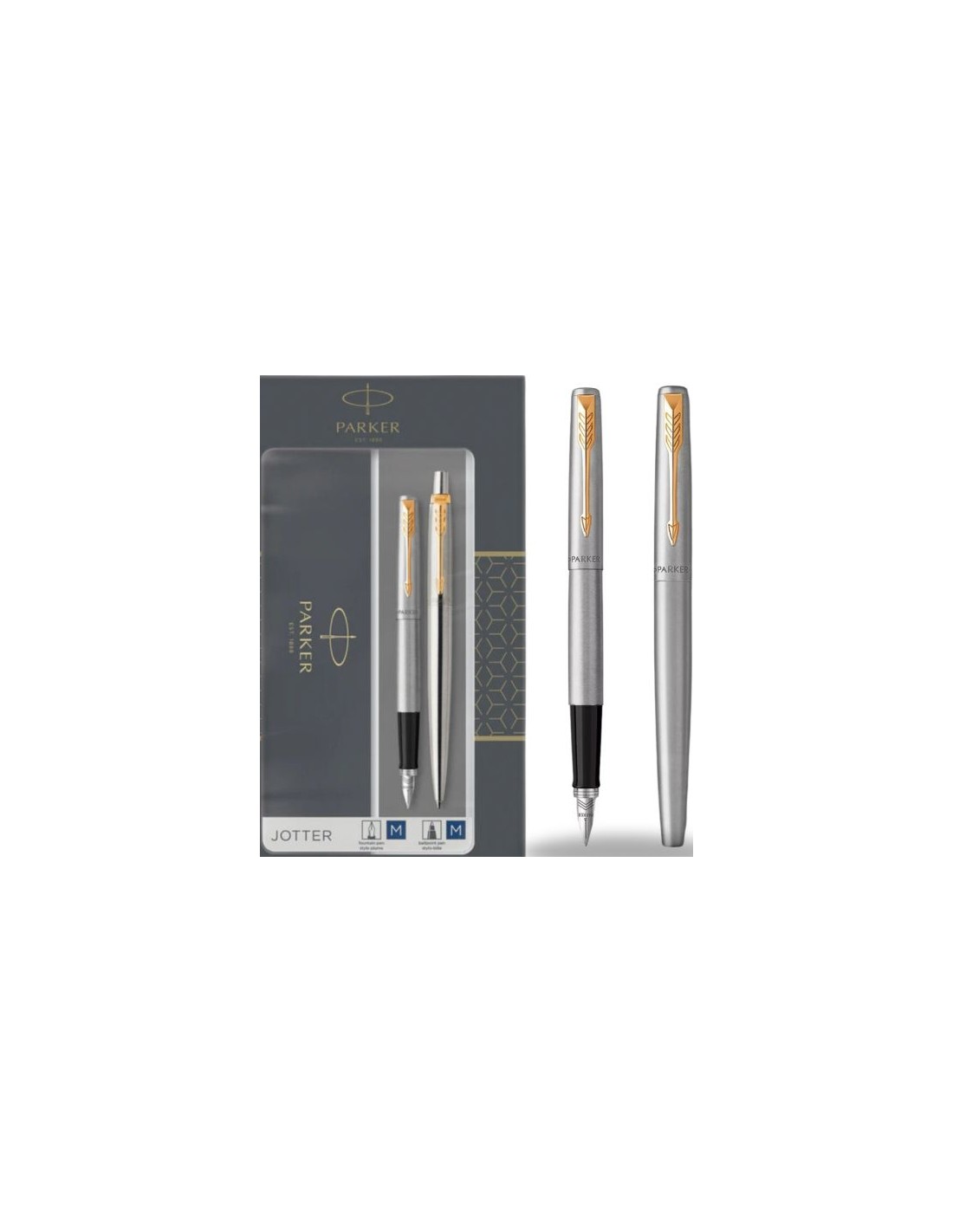 Set boligrafo y pluma parker jotter duo acabado acero y dorado