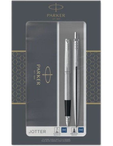 Set boligrafo y pluma estilográfica Parker jotter acabado acero inoxidable con detalles cromados