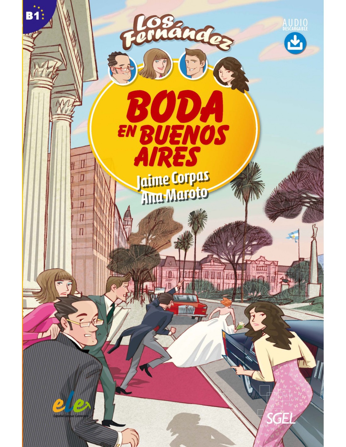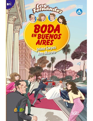 Lectura graduada destinada a estudiantes jóvenes y adultos. Nivel B1 del MCER. Pertenece a la colección Los Fernández, una familia contemporánea divertida y viajera. Los Fernández van a la boda de una prima en Buenos Aires. Cuando llegan al aeropuerto, descubren que la familia del novio piensa que son aristócratas. Aunque no les gusta, aceptan interpretar este papel para ayudar a la familia. Ofrece un lenguaje actual y representativo del español hablado. Incluye notas explicativas en cada capítulo. Hay actividades de comprensión y reflexión tras la lectura. Hay un solucionario de las actividades propuestas al final del libro.El audio de la lectura puede descargarse en www.sge.es/ele, así como una capítulo de muestra.
