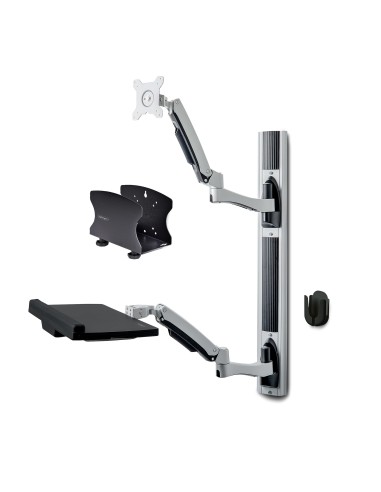 Estación de Trabajo Soporte de Pared para Monitor VESA de 27 Pulgadas (10kg) con Bracket para CPU / Ordenador y Bandeja para Teclado y Ratón - con Brazo Articulado para Monitor