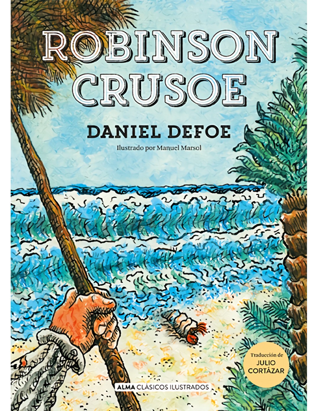 Tras una travesía llena de aventuras y peligros, el marinero Robinson Crusoe naufraga en una isla desierta donde le esperan más de dos décadas de absoluta soledad. Para sobrevivir y construir un nuevo mundo desde cero, cuenta con una sola herramienta: sus propias manos. Considerado el padre de la novela británica, Daniel Defoe recurre en esta historia a un brillante uso de la perspectiva para poner en primer plano aspectos como los peligros de la naturaleza, el instinto o la soledad. Uno de los libros de aventuras más leídos de todos los tiempos, traducido por el maestro Julio Cortázar