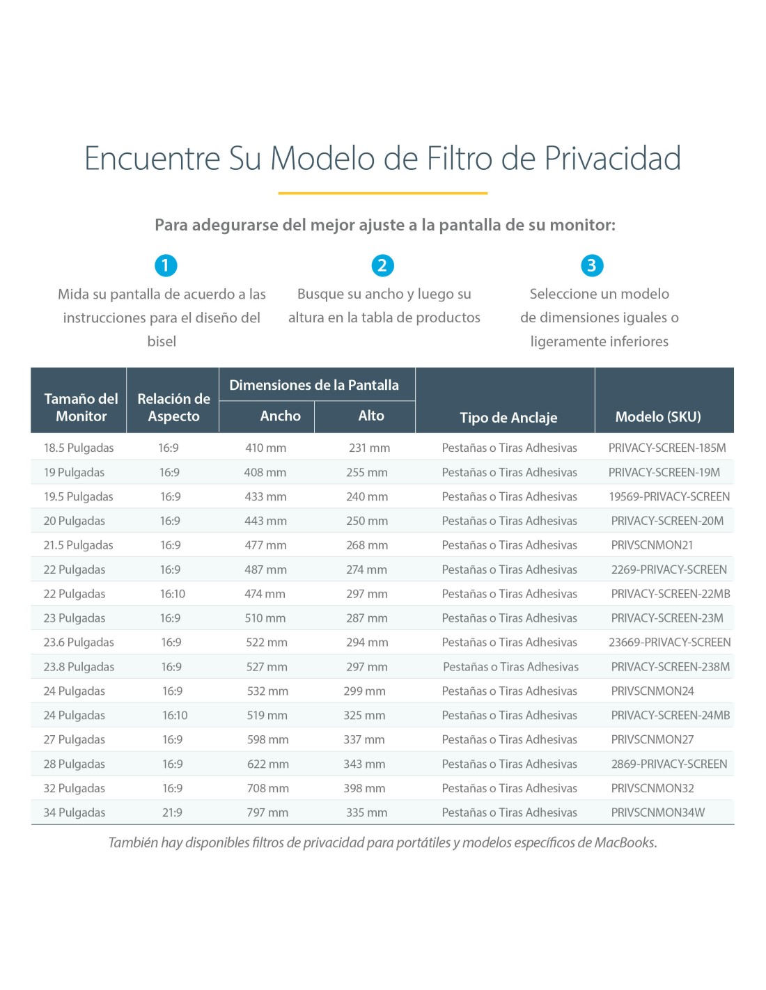 - Filtros de privacidad de pantalla