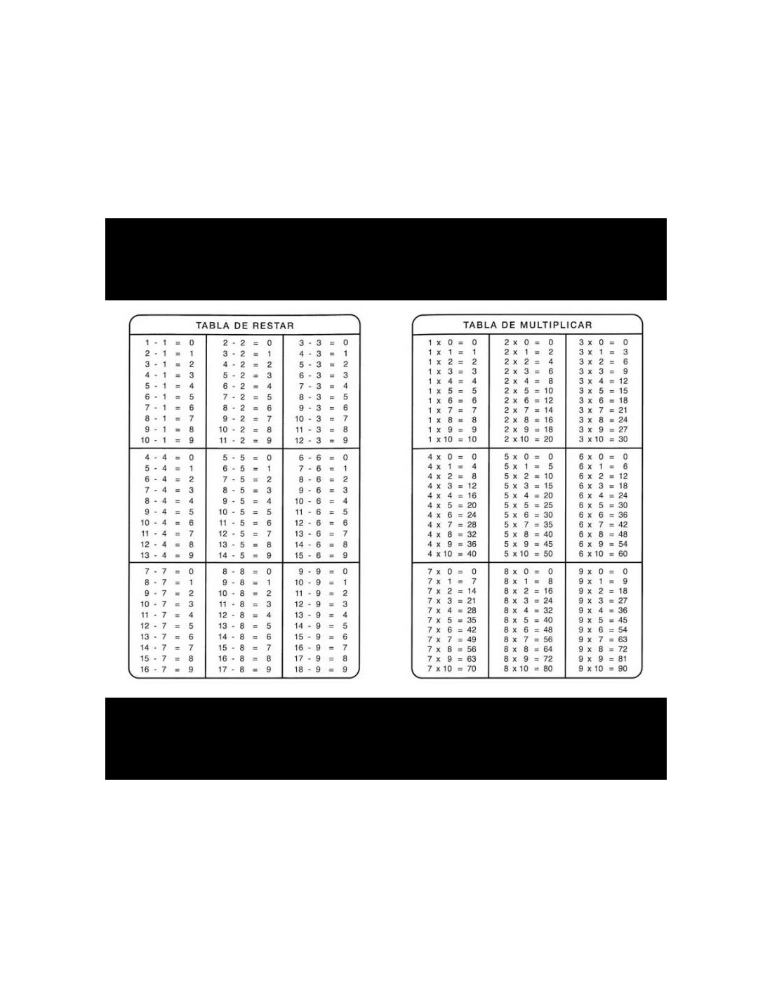 TABLAS DE OPERACIONES
