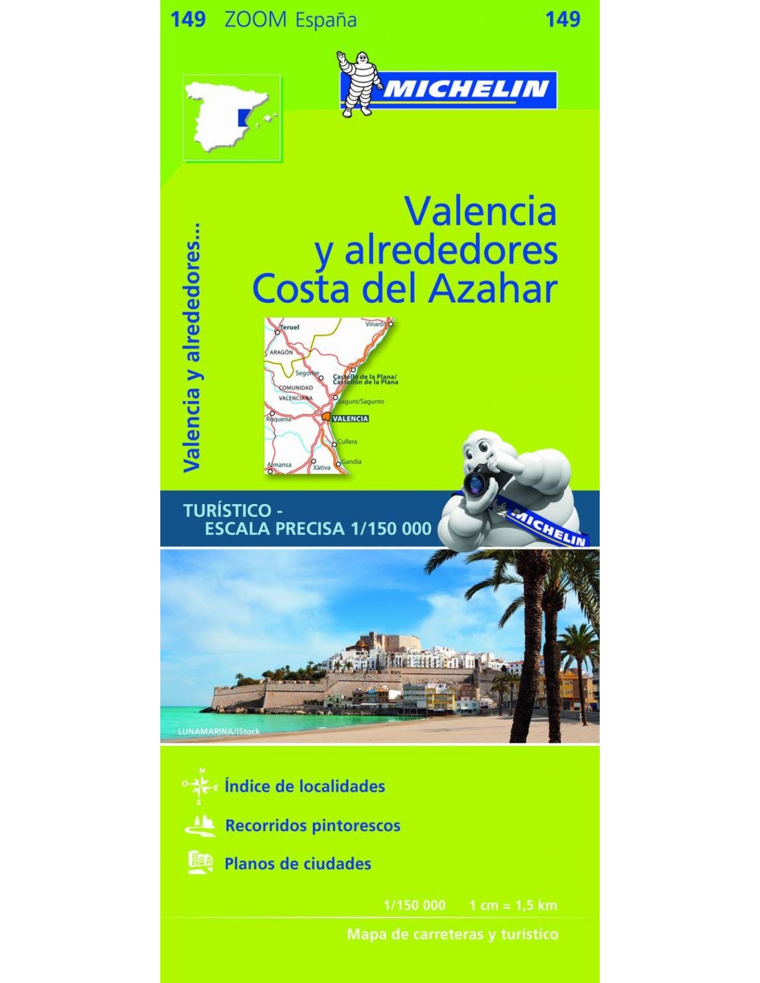 Los mapas de carreteras de la colección Zoom se caracterizan por la gran precisión que aporta su escala detallada, especialmente adaptada para zonas muy turísticas o con una red viaria de alta densidad, incluyendo las nuevas urbanizaciones y zonas industriales. A la claridad, fiabilidad y actualización, características presentes en toda la cartografía Michelin, se le suma una gran cantidad de informaciones prácticas: lugares y monumentos de interés turístico, recorridos pintorescos, zonas para la práctica de deportes y actividades de ocio, ..., además de unos útiles planos de ciudades y un práctico índice de localidades. El Mapa Zoom Valencia y alrededores, Costa del Azahar, editado a escala 1/150 000, presenta la leyenda en seis idiomas (castellano, portugués, valenciano, alemán, francés e inglés), índice de localidades y contiene los planos de tanto de Castellón de la Plana como de Valencia.