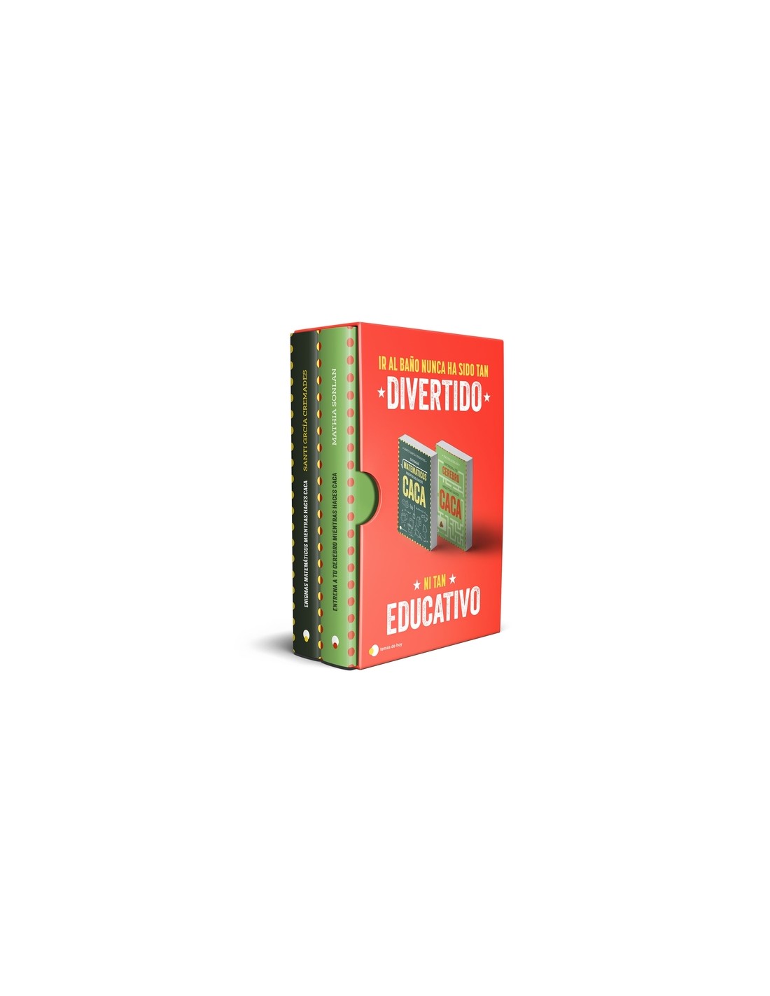 ÚNETE AL FENÓMENO DE LOS JUEGOS Y ACERTIJOS DE LÓGICA PARA DETECTIVES EN CUCLILLAS CON ESTE ESTUCHE DE DOS LIBROS.Con Entrena a tu cerebro mientras haces cacas, exprime tus neuronas y resuelve 210 acertijos, adivinanzas, sudokus y kenkens, hexagramas de letras, sopas de letras, juegos ópticos y mucho más. El primer paso es sentarse en el inodoro. El resto, devanarse los sesos para resolver estos desafiantes juegos de lógica. Y con Enigmas matemáticos para resolver mientras haces caca, encontrarás problemas de lógica, acertijos visuales, juegos numéricos y paradojas tan absurdamente divertidas como instructivas. Todo con el sello inconfundible de Santi: cercanía, humor y una pizca de irreverencia. APROVECHA ESTA OPORTUNIDAD PARA LLEVARTE DOS VOLÚMENES DEL FENÓMENO EDITORIAL QUE NO PARA DE CRECER EN TODO EL MUNDO.
