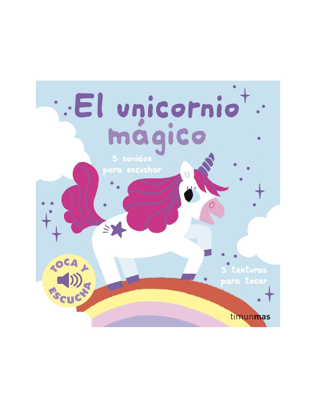 ¡Sigue al unicornio y sumérgete en un mundo lleno de texturas y sonidos mágicos! 5 imágenes · 5 texturas · 5 melodías ¡Mi primer libro de sonidos y texturas! ¡Presiona los botones y descubrirás el mágico mundo de los unicornios! Con sonidos de gran calidad, botones adaptados a pequeñas manos muy fáciles de pulsar y texturas que estimularán los sentidos de los más pequeños. Los libros con texturas son perfectos para el despertar sensorial de los bebés que empiezan a explorar el mundo con sus manos. Además, el hecho de ser capaces de pulsar los botones que activan los sonidos por sí mismos aumenta su interés por el libro y contribuye a que quieran leerlo una y otra vez. En este libro encontrarás ríos encantados, arcoíris relucientes, duendecillos, criaturas fantásticas... ¡Y no podía faltar un precioso unicornio mágico que nos guía a través de los paisajes! Un libro realmente precioso para la hora de ir a la cama, con colores brillantes, texturas suaves y melodías que os sumergirán fácilmente a ti y a tu bebé al mundo de los sueños. Recomendado a partir de 6 meses. Ilustrado por Marion Billet. Títulos de la colección Toca y escucha: La granja. Toca y escucha Los colores. Toca y escucha La noche. Toca y escucha Pequeños animales. Toca y escucha ¡Brum! Toca y escucha El jardín. Toca y escucha Los animales salvajes. Toca y escucha Mis peluches. Toca y escucha ¡Hola, bebé! Toca y escucha El bosque. Toca y escucha Buenas noches, bebé. Toca y escucha El unicornio mágico. Toca y escucha.