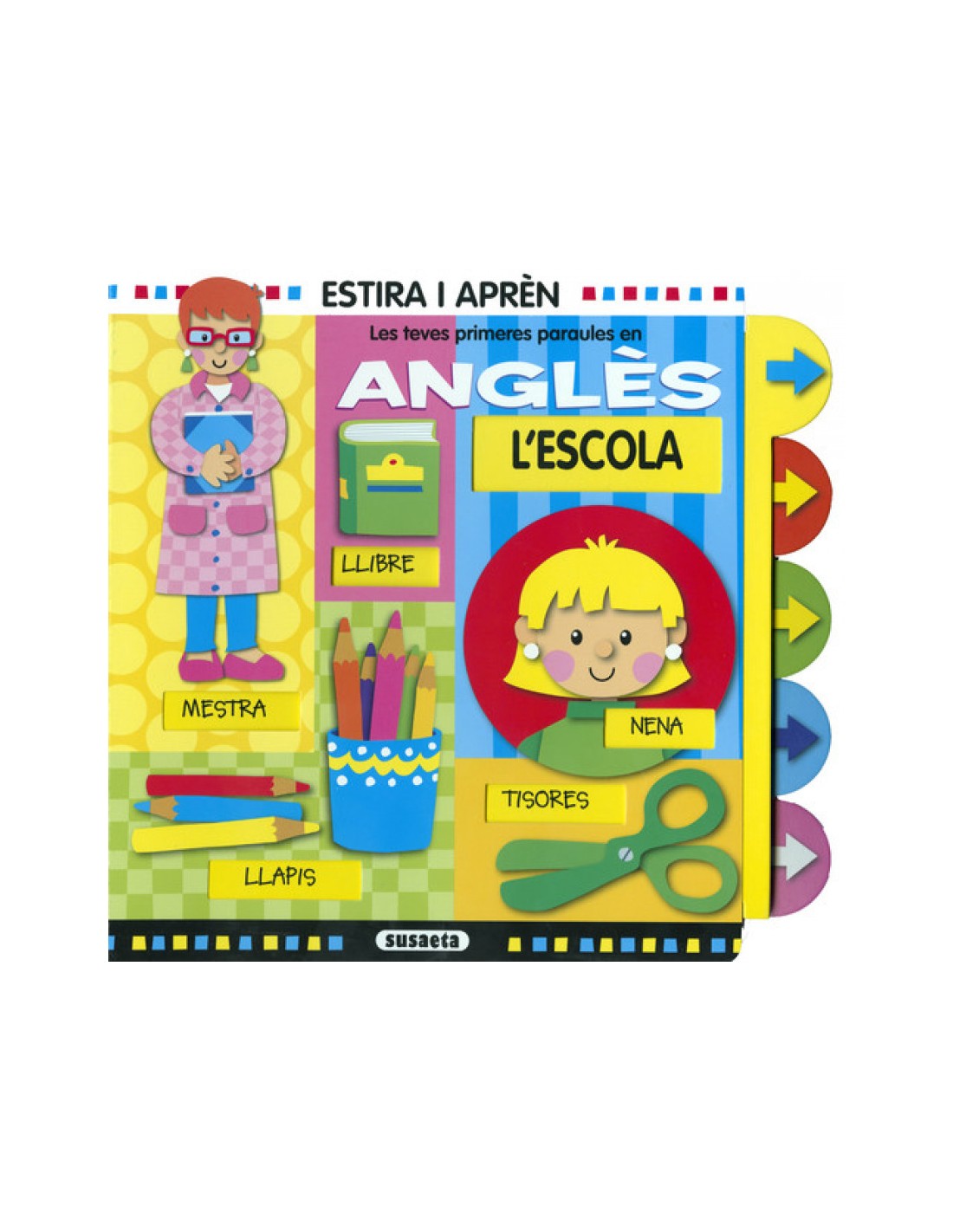Una col·lecció de llibres interactius perqué els infants aprenguin anglés d'una forma divertida. Els adults poden llegir amb ells les paraules de cada página en catalá, estirar la fletxa i veure la traducció en anglés. També poden jugar plegats a memoritzar les paraules i estirar la fletxa per a saber qui l'ha encertat.