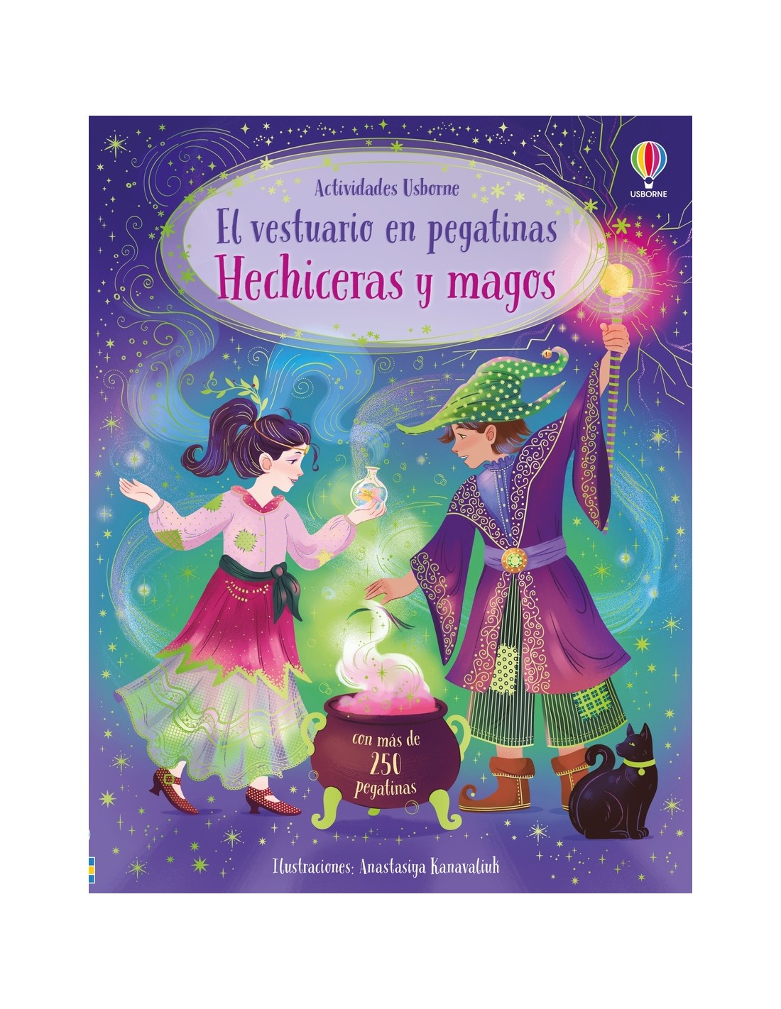 Con la ayuda de las pegatinas, los niños podrán vestir a las brujas y magos de este libro hechizado. Entre las escenas se incluyen de pociones mágicas, una cueva con luz de velas y un bosque encantado. Además de la ropa para vestir a los personajes, también hay un montón de pegatinas para decorar las escenas, como por ejemplo murciélagos, gatos y búhos.