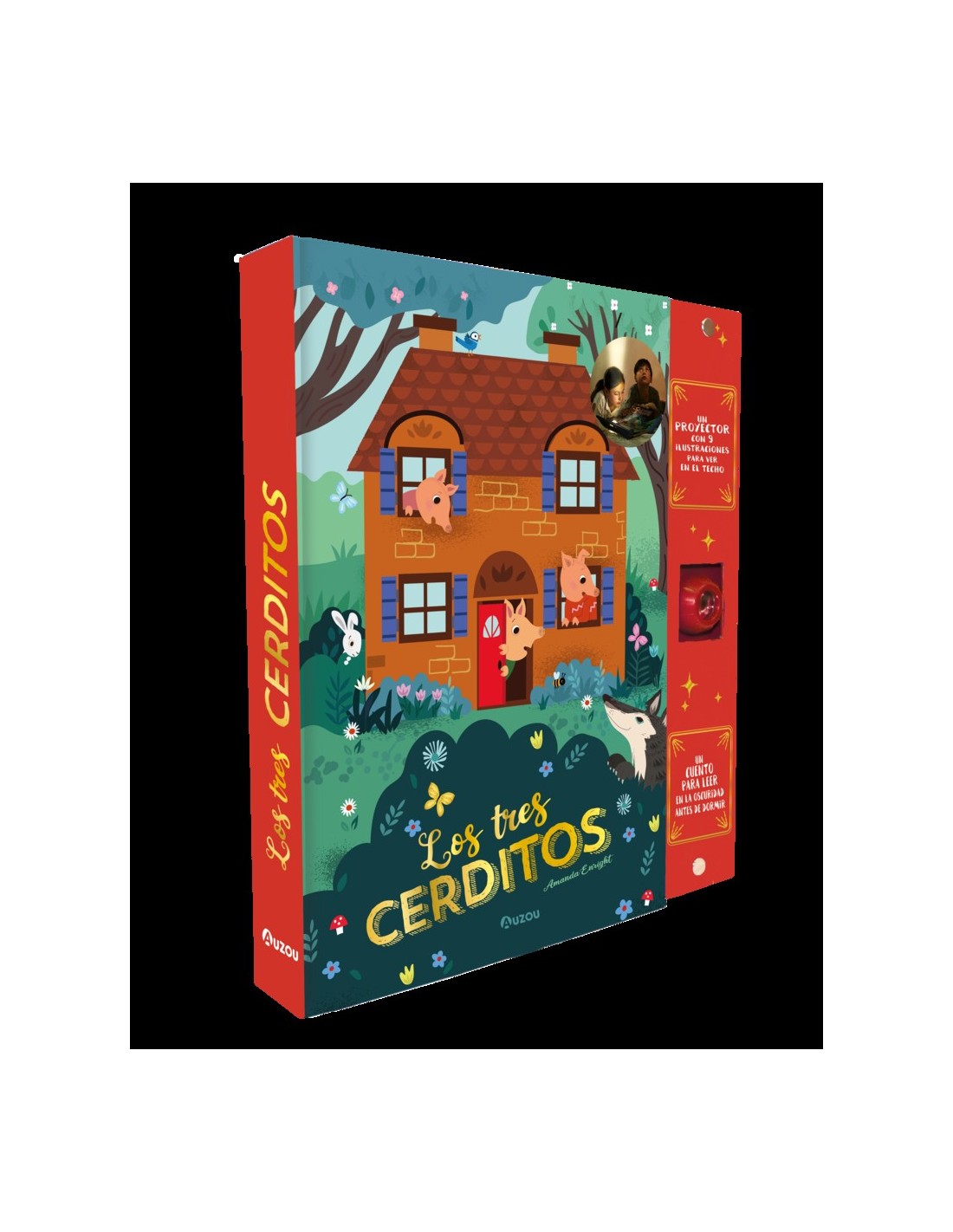 El cuento clásico imprescindible de Los Tres Cerditos, cuyas ilustraciones se proyectan en el techo gracias a una lámpara mágica.