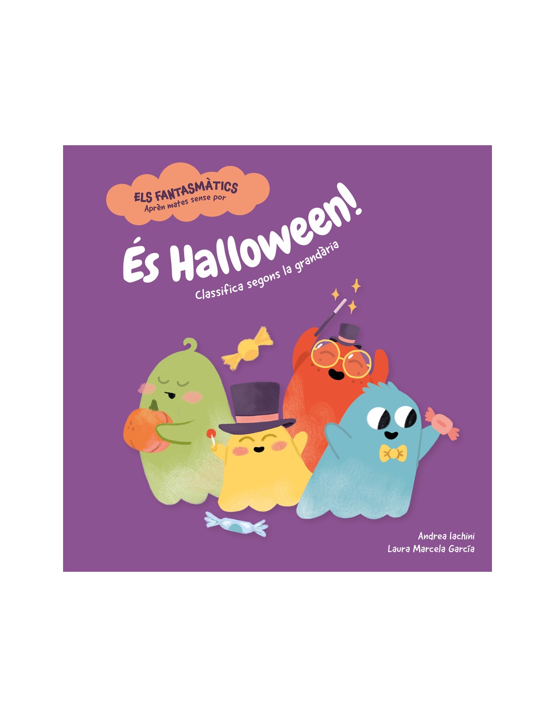 Amb els llibres dels Fantasmàtics, els més petits aprendran matemàtiques sense por. Avui els fantasmàtics es preparen per celebrar la nit de Halloween: primer decoraran el castell amb carbasses i després sortiran a jugar i fer bromes per aconseguir caramels. APRÉN A CLASSIFICAR OBJECTES GRANS I PETITS «A És Halloween! ens submergim a lunivers matemàtic mitjançant la classificació de diversos elements temàtics com són les carbasses, els barrets i els caramels. A lhora didentificar i agrupar objectes segons les seves característiques com ara la mida o la forma, els nens i les nenes desenvolupen habilitats clau que posen les bases per comprendre, en un futur, nocions més complexes com els patrons, la numeració, la representació gràfica, la geometria o la mesura.» Lola Morales, professora de Matemàtiques. Què trobaràs en aquest llibre Un divertit conte adaptat a partir de la sèrie original de Los Fantasmáticos, disponible al nostre canal de YouTube. Il·lustracions precioses a tot color pensades per facilitar laprenentatge i consolidar els conceptes. Una edició en format de cartró perquè duri molt de temps: manipulable, segura i accessible per als més petits. ***DESCOBREIX EL CONTINGUT I LES ACTIVITATS EXTRES*** Escaneja els codis QR que trobaràs a linterior del llibre i gaudeix de contingut exclusiu per continuar aprenent. El vídeo en què es basa el conte al canal de YouTube. Shacktivitats: passatemps, quizzes, exercicis i activitats per divertir-te a casa o a laula. ELS FANTAMÀSTICS Aprèn mates sense por.