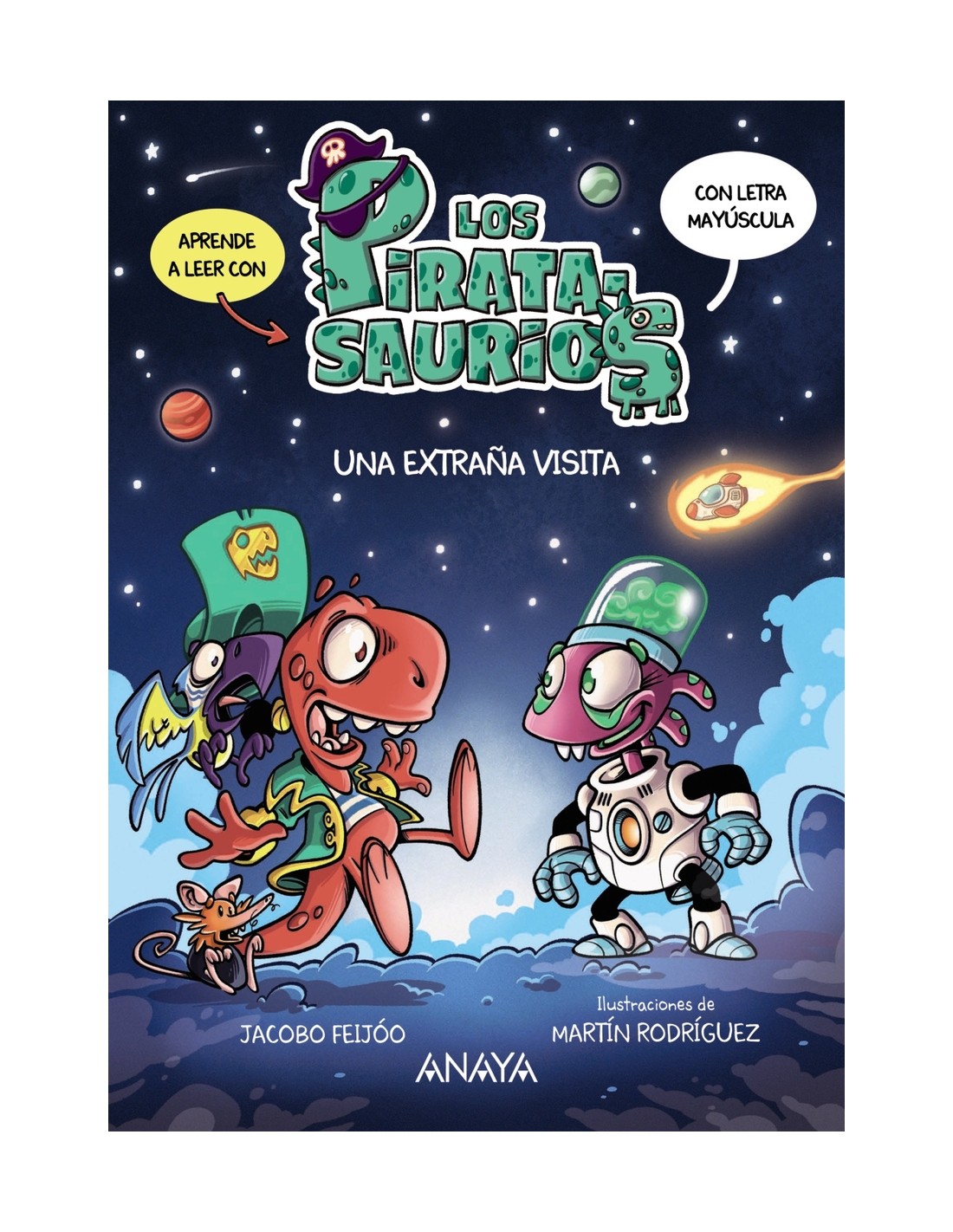 Ponle un parche a un dinosaurio ¡y tendrás un piratasaurio! ¡Dinosaurios y piratas de la cabeza a las patas!¡Nuevas aventuras de los piratasaurios!En letra mayúscula para aprender a leer.¡Con rimas, curiosidades, chistes y juegos! En esta nueva aventura, T. Rex y su tripulación son sorprendidos por una inesperada visita. Es diferente a los demás, no es dino y tampoco pirata, pero, sin duda, se trata de alguien muy especial.