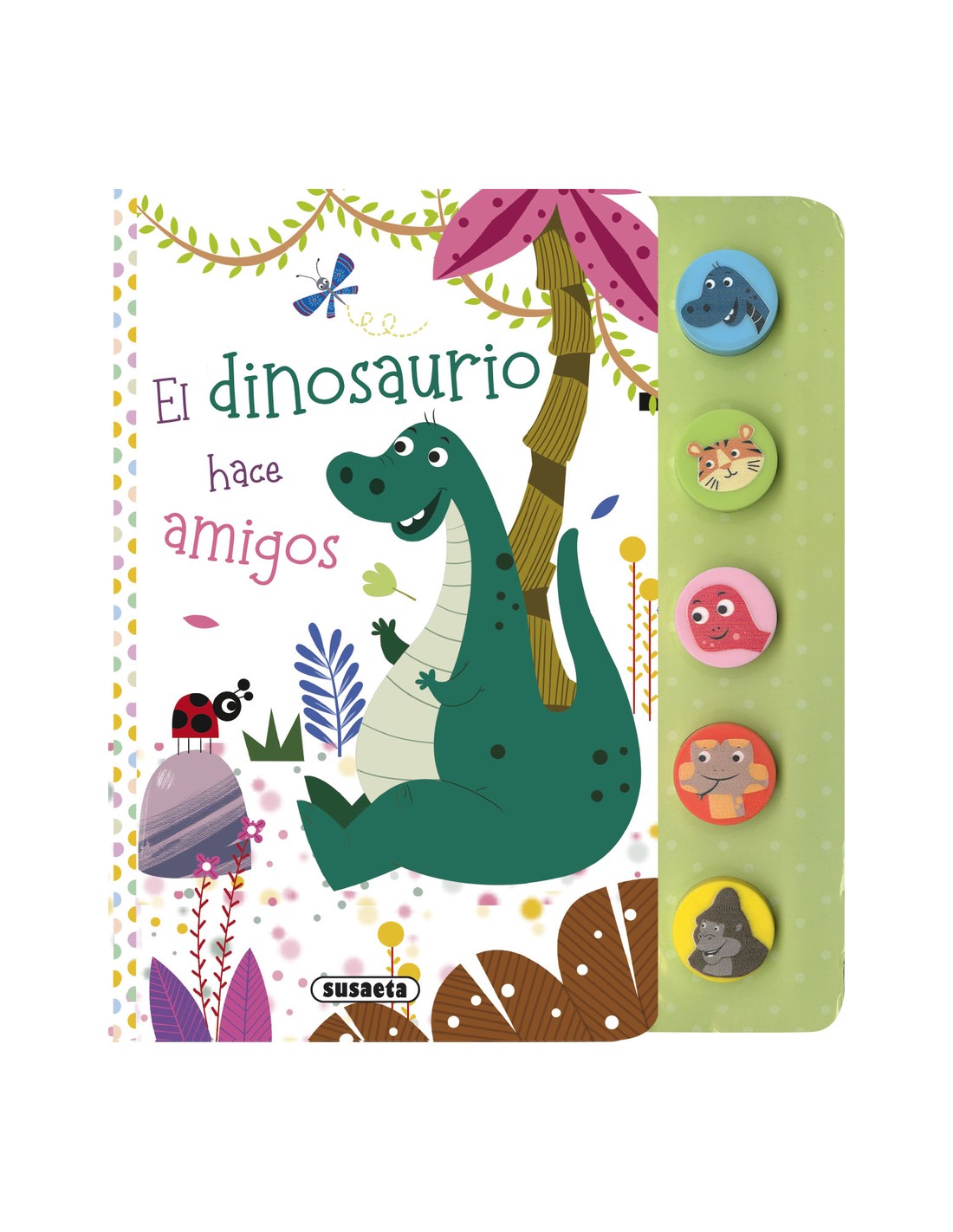 Escucha los sonidos de los animales de este libro pulsando los botones de silicona. Tienes cinco sonidos en este libro de cartón, que podrás descubrir a medida que lees la historia de este simpático dinosaurio.