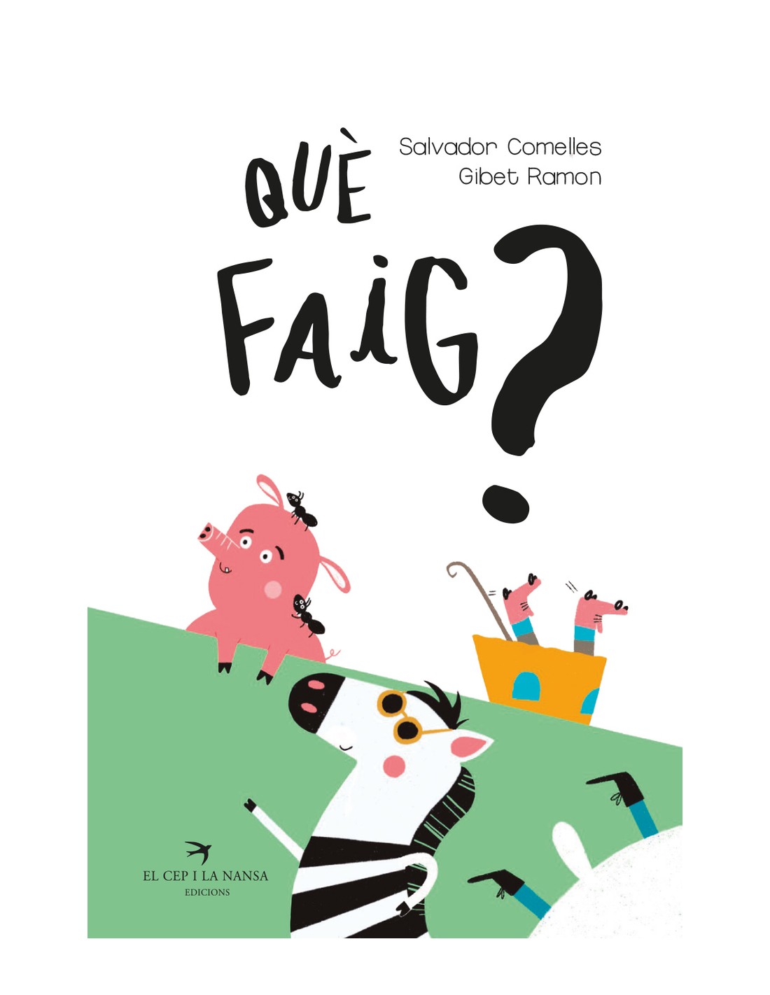 Què faig  és un poemari que ens presenta 14 animals il·lustrats que realitzen accions quotidianes. Cada un d'ells ve acompanyat d'un petit poema d'entre dos i quatre versos, en lletra de pal, que descriu de manera rimada i musical aquestes accions.