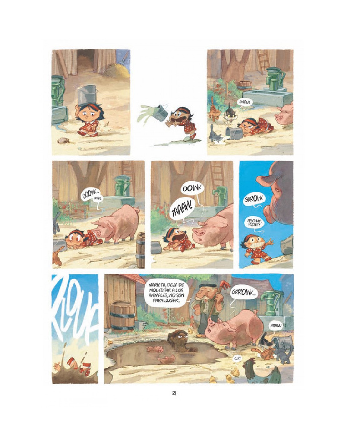 Naneta recuerda que, con ocho añitos, era una niña con mucho carácter. Naneta recuerda que, con ocho añitos, su madre la llevó a casa del abuelo Emilio, y que allí tuvo que aprender la vida en el campoà ¡y era mucho trabajo! En aquel entonces aún la llamaban Marieta, la niña de la ciudad, a quien había que enseñarselo todo: ordeñar, llevar zuecos, recoger la fruta, coser, vigilar el rebaño de cabrasà Ayudada por la títa Susa o el pequeño Juanito, Marieta descubre poco a poco el día a día en el campo, agotador, mientras espera a que su madre venga a recuperarla. ¡Una suerte que su amiga la cabra Blanquita la acompañe a todas partes! En realidad son tiempos dificiles, una guerra mundial terminada y otra a punto de empezar, tanto en el campo como en la ciudad hay mucho trabajo pero poco dinero. Ya que su madre no puede ocuparse de ella, Marieta debe quedarse sola en casa de sus abuelos y aceptar que los padres también tienen problemas y dudas a veces. Es el momento descubrir la autonomía y encontrar su propio camino. Una suerte que esta dificil tarea esté sembrada de buenos encuentrosà ¡Naneta, ahora una abuelita muy graciosa, recuerda esta epóca peliaguda con mucho cariño! Cuando era pequeña, ¡tenía mucha prisa por hacerme mayor! De la exitosa serie francesa Les souvenirs de Mamette se está preparando una serie de dibujos animados para la televisión cuyo estreno debería hacerse en el 2013. El primer album de esta serie (Marieta, los recuerdos de Naneta en España - Dibbuks) fue nominado como Mejor obra infantil y juvenil en el Festival de Angouleme 2010.Nob (Tours, 1973) da sus primeros pasos de dibujante en un fanzine que crea en sus años de instituto. Gracias a su primer premio en un concurso para autores jóvenes organizado por la editorial Glénat, Nob empieza a ser un autor habitual de la famosa revista francesa para niños Tcho!. Es allí donde crea las aventuras de Bogzzz (4 tomos en total) antes de pasar a ser el redactor jefe de la revista en el 2003. Un año después se lanza en la aventura de Mon ami Grompf, el yeti mascota, primero publicado por entrega, antes de ser una exitosa serie infantil de Glénat (8 tomos en 2012 y un dibujo animado para la televisión). Con el personaje de Mamette (Naneta en España), le llega la consagración: 5 tomos de la serie principal Mamette (para la cual se lleva el premio Millepage), la abuela que se porta como una niña, y 3 tomos de Les souvenirs de Mamette, o su historia cuando era niña y todavía se la llamaba Marinette (Marieta en español). También se anuncia para el 2013 un nuevo álbum deà ¡recetas de cocina! El último proyecto de Nob, aparte de la amplia actividad alrededor de Mamette es Alice au pays des singes con sus amigos Keramidas y Tebo.