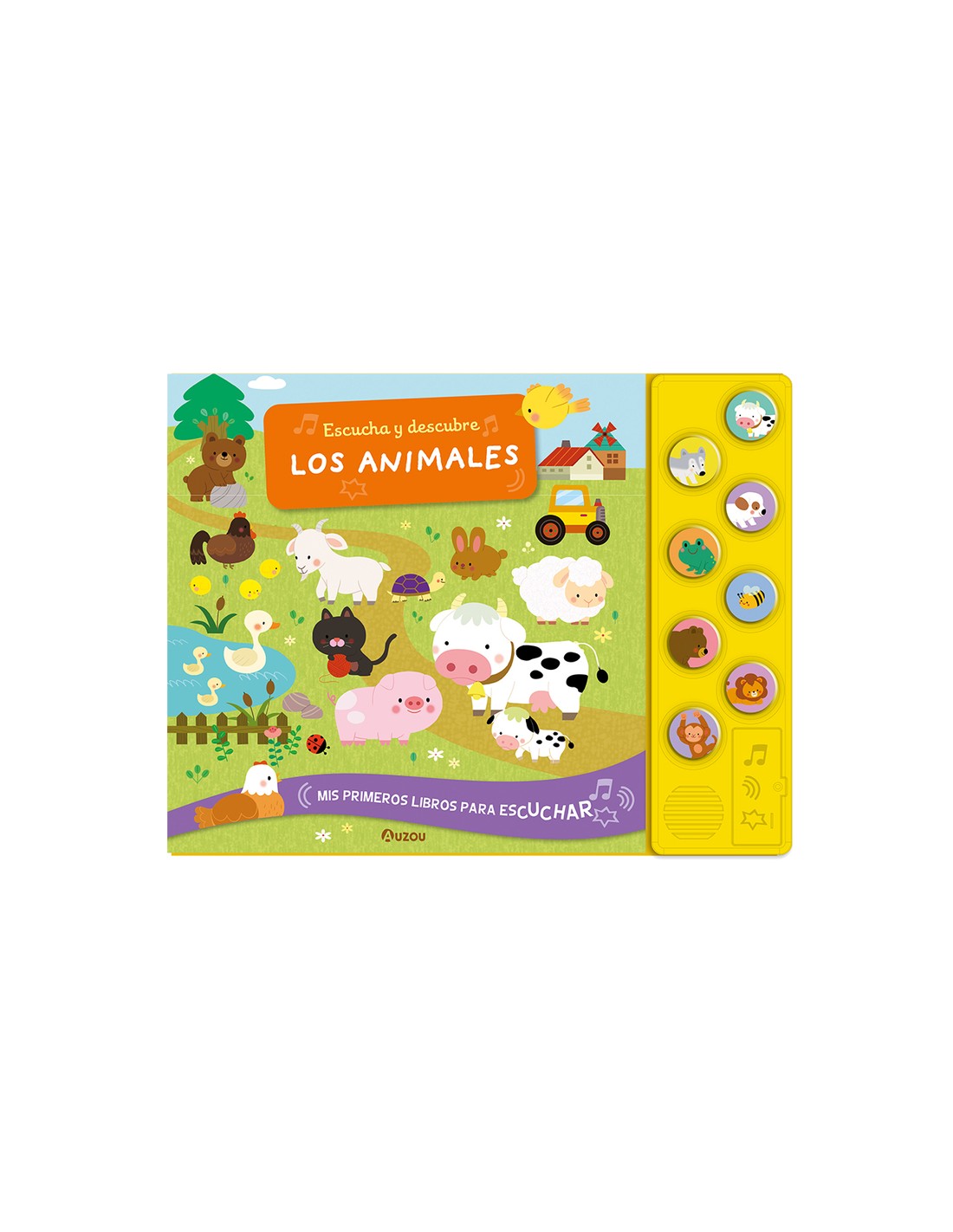 Ocho sonidos para aprender a reconocer animales asociándolos a una imagen. Un busca y encuentra sonoro para los más pequeños que les enseña a reconocer los sonidos, a asociarlos con una imagen y a memorizarlos a través del juego. Aprieta el botón, escucha el sonido y búscalo en la página. La colección Mis primeros libros para escuchar combina el busca y encuentra clásico o el libro documental con el libro de sonidos, y te invita a descubrir cada una de sus dobles páginas pulsando los botones ubicados en el lateral derecho.