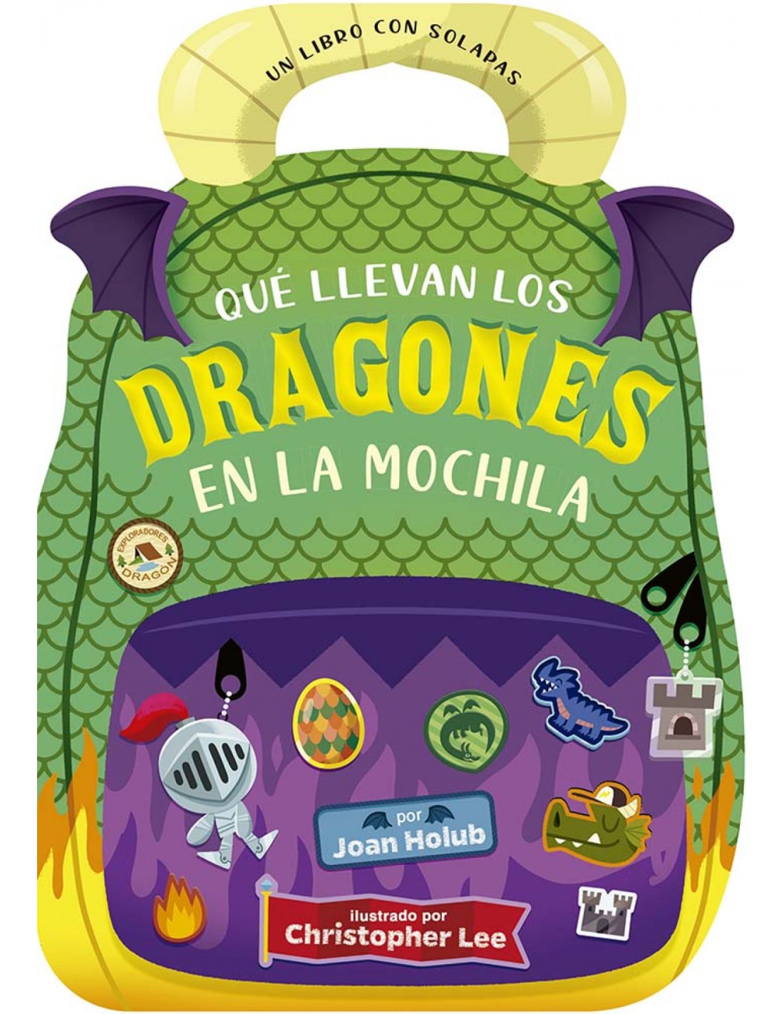 ¿Qué hay en la mochila de un dragón Mira dentro. Deberes, libros o bolas de fuego... ¿Cuántos secretos puedes encontrar Un libro con un formato especial para que los niños puedan cogerlo como si fuera una mo-chila y también con solapas para que puedan interactuar con las diferentes pestañas.
