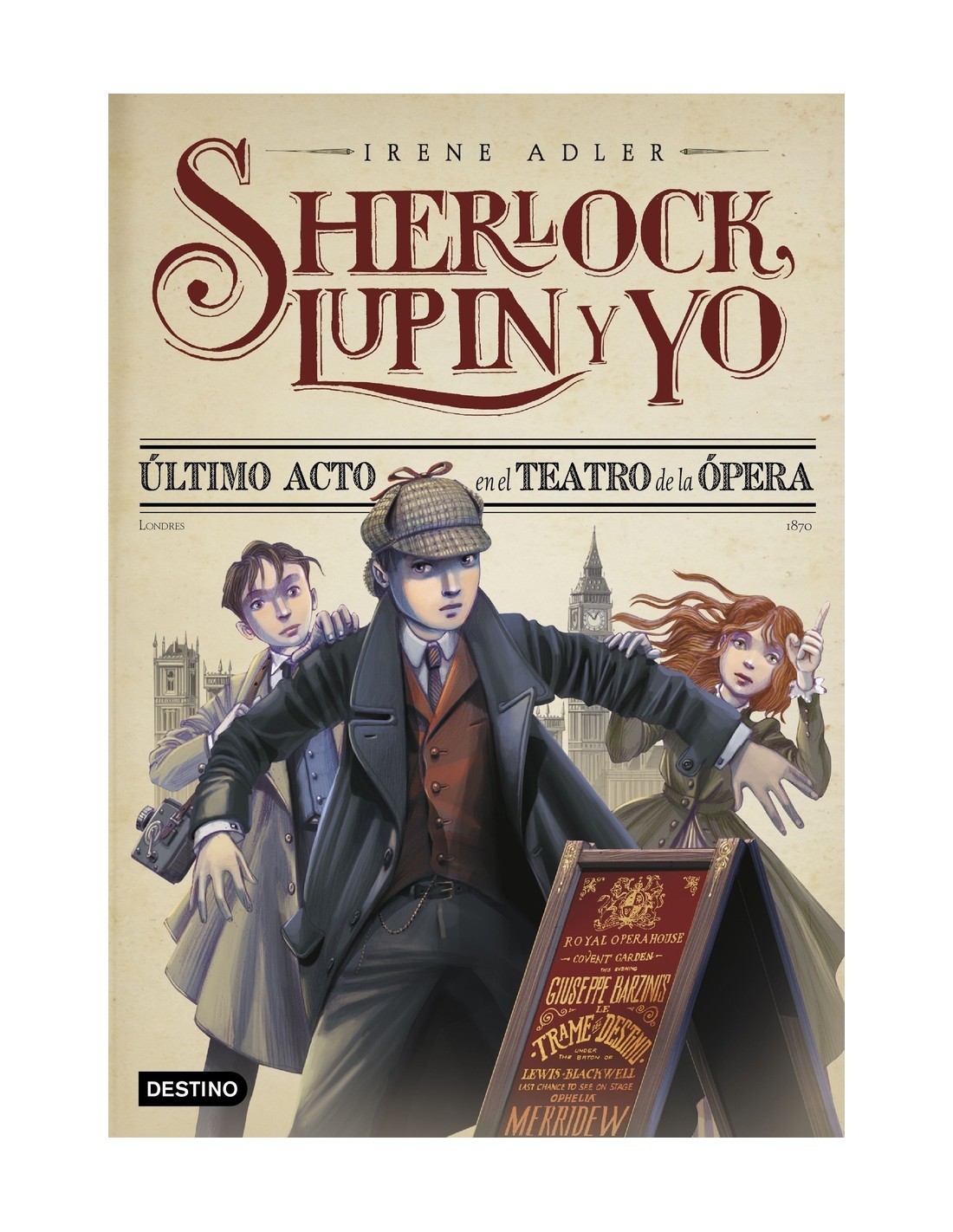 Irene, Sherlock y Lupin se citan en Londres. Pero Lupin no se presenta, pues su padre, Théophraste, está bajo arresto acusado de robo y del homicidio de Alfredo Santi, secretario del gran compositor Giuseppe Barzini. Los chicos emprenden una investigación para exculparlo;el rescate de la célebre soprano Ophelia Merridew en el sórdido barrio de Bethnal Green es sólo el primero de los sucesos sensacionales que conducirán a Sherlock y sus amigos a desenmascarar al menos sospechoso de los culpables.