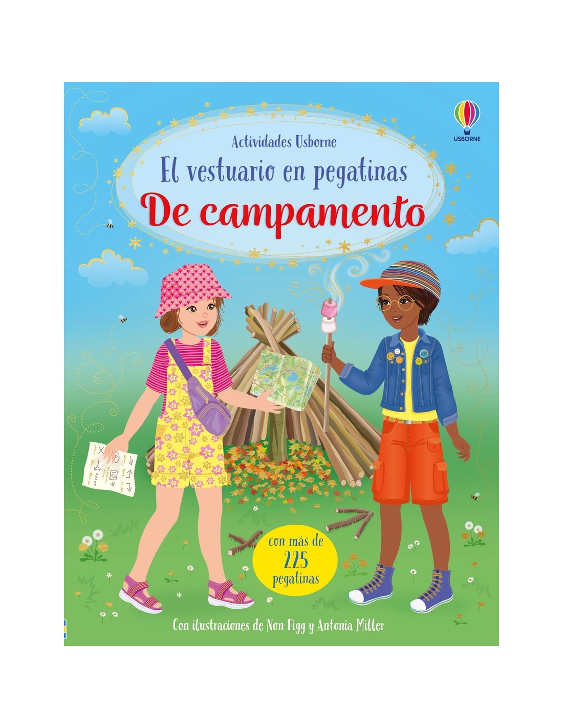 Niños y niñas se divertirán vistiendo a las muñecas de este libro con pegatinas de vestidos y accesorios para que puedan ir de campamentos de verano. Los protagonistas practican el paddle surf, pasean por el campo, preparan la comida en una hoguera y realizan muchas otras actividades con sus amigos.