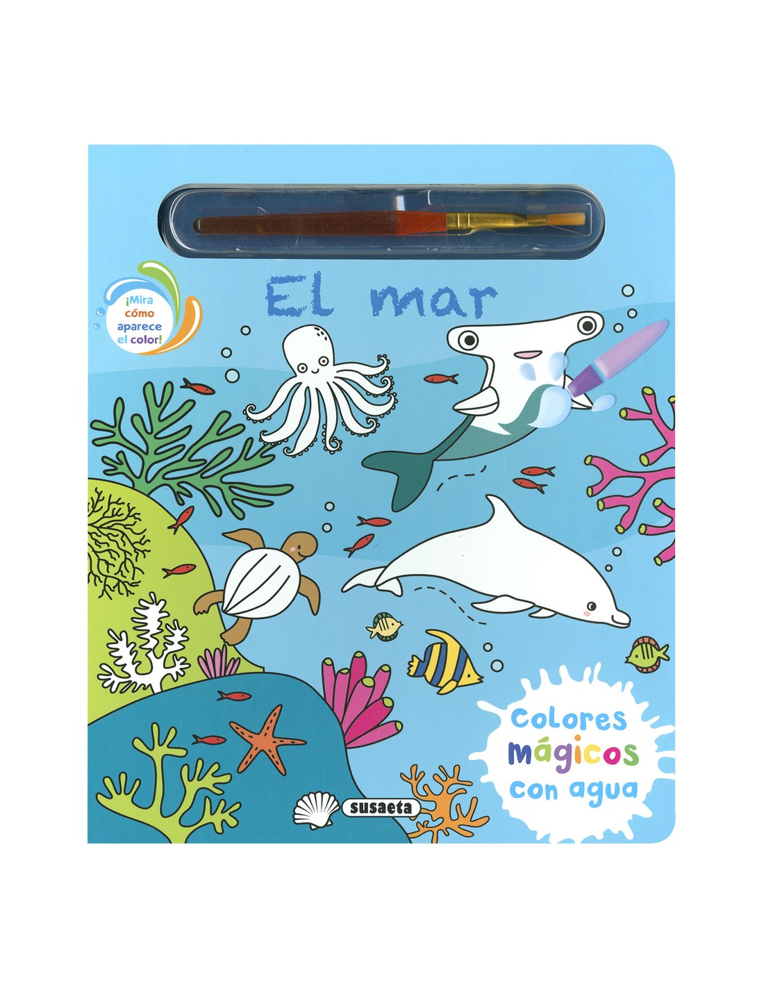 Sumerge el pincel en el agua y pinta las zonas blancas de las páginas. ¡Los colores aparecen por arte de magia! Cuando el agua se seca, los colores desaparecen y se puede volver a empezar. Un divertido libro de colorear para que disfrutes con los animales del mar.