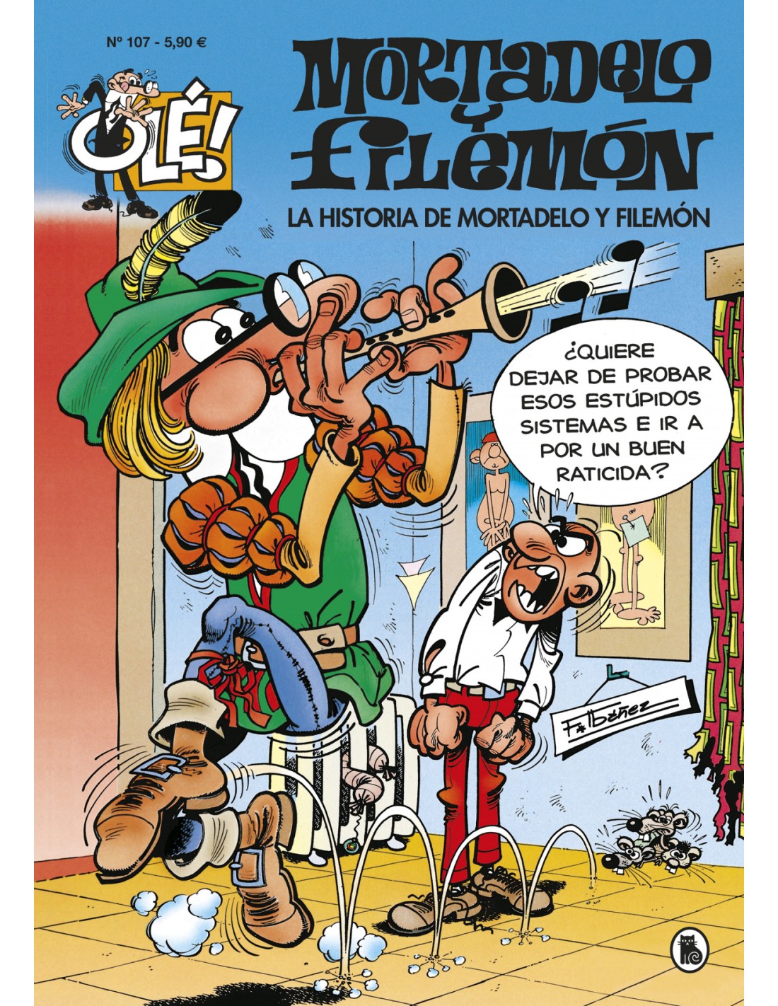 Número 107 de la colección «Olé Mortadelo», la más longeva hasta la actualidad. Conoce la historia, desde sus inicios, de la pareja de agentes más famosa de la historia de España En esta historieta, Francisco Ibáñez nos cuenta los inicios de Mortadelo y Filemón, cómo se conocieron, llegaron a ser agentes secretos y también el porqué de la calva de Mortadelo (un invento fallido de Bacterio). Sobre la colección: La colección «Olé!» nació en 1971 en Bruguera y se convirtió rápidamente en uno de los mayores éxitos de la editorial. Hoy en día todavía puede presumir de ser una de las colecciones más longevas del mercado nacional del cómic. En sus orígenes, «Olé!» recopilaba aventuras cortas y contenía una gran variedad de personajes del gran fondo de cómic de Bruguera: desde los principales personajes de Ibáñez, Vázquez y Escobar, hasta los inolvidables Sir Tim O´Theo de Raf, Don Pío y Gordito Relleno de Peñarroya, Agamenón de Nené Estivill, Rigoberto Picaporte de Robert Segura, Deliranta Rococó de Martz Schmidt, entre otros. En la actualidad, en «Olé!» se publican las novedades de Mortadelo y Filemón que han aparecido previamente en la colección «Magos del Humor».