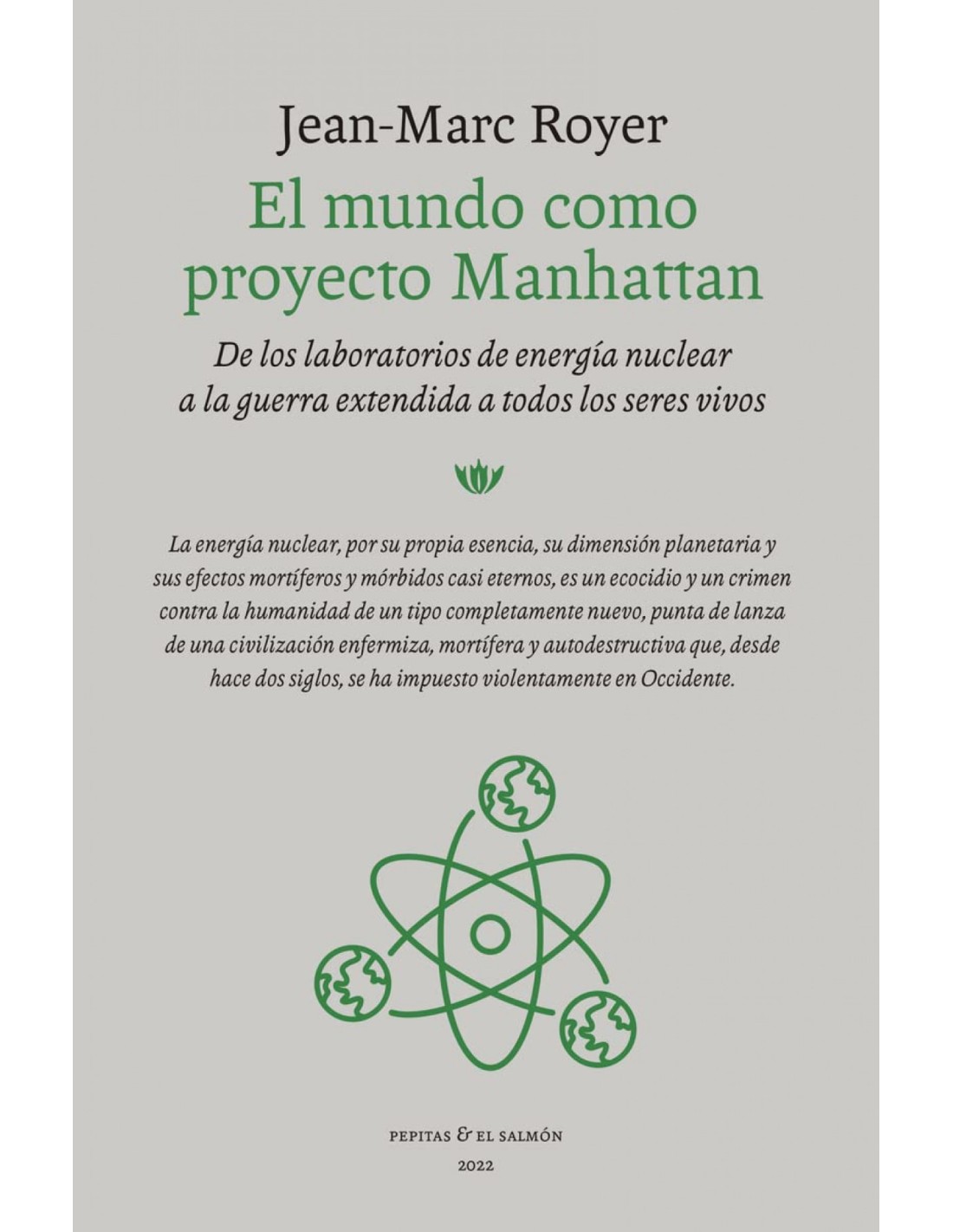 El 6 de agosto de 1945, el mundo descubrió fascinado el poder del átomo. Las bombas lanzadas sobre Hiroshima y Nagasaki, dos ciudades elegidas con el objetivo de «causar la mayor destrucción y pérdida de vidas posible», fueron el resultado inevitable del proyecto Manhattan. Iniciado y llevado a cabo en el mayor de los secretos, el proyecto reunió durante cuatro años a la élite científica internacional, a las industrias americanas de alta tecnología (desde Monsanto a Westinghouse) y al poder del Estado respaldado por su ejército. Este libro ofrece un estudio histórico rigurosamente documentado sobre los orígenes secretos de la energía nuclear;un relato escalofriante que muestra cómo la búsqueda de una «solución final» se impuso muy pronto por encima de toda consideración humana.El proyecto Manhattan es contemporáneo de otra empresa de muerte masiva, la que culminó en Auschwitz-Birkenau. Para el autor, ambos momentos (Auschwitz e Hiroshima) son los «puntos de inflexión» de la historia -inaugurada un siglo- antes de la alianza entre el conocimiento científico, el capitalismo industrial y los Estados-nación. La