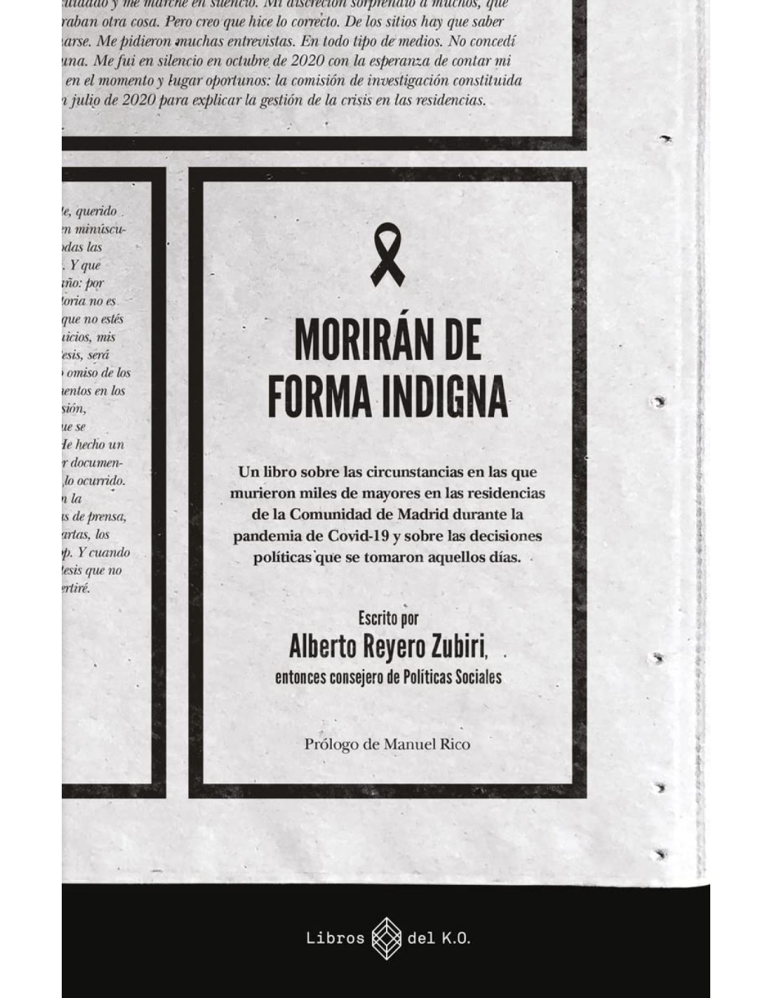 En la Comunidad de Madrid murieron miles de mayores en las residencias durante la pandemia de Covid-19. La cifra podría haber sido inferior de no haberse aplicado unos polémicos protocolos que impidieron el acceso de muchos residentes a los hospitales y que les condenaron a una muerte en condiciones indignas. Durante aquellas terribles semanas, Alberto Reyero Zubiri ùentonces consejero de Políticas Sociales y, por tanto, la máxima autoridad en las residencias de la regiónù se desgañitó pidiendo ayuda y denunciando las dramáticas consecuencias de estos protocolos. Pero sus compañeros en el Gobierno, del Partido Popular, le ignoraron. En este libro, el exconsejero realiza un ejercicio voluntario de rendición de cuentas y relata la intrahistoria de cómo se tomaron aquellas decisiones. Morirán de forma indigna no solo es un documento político de primer orden sobre un episodio histórico que aún sangra, sino que también eleva la mirada hacia el futuro y los peligros que vendrán si seguimos ignorando nuestras responsabilidades.res circunstancias prefirieron plantar la batalla de la dignidad. Sin caer en la ép
