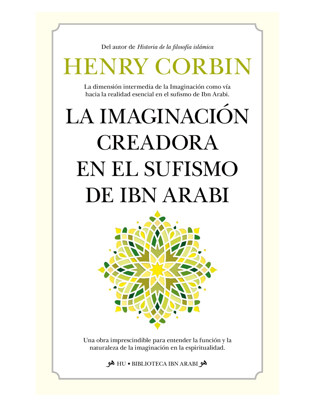 En «La Imaginación creadora en el sufismo de Ibn Arabi», Henry Corbin nos propone un fascinante viaje hacia el mundo del sufismo y la teosofía de la luz. El interés central de este libro, que ha inspirado a sucesivas generaciones de literatos, creadores e investigadores de las más diversas tendencias, radica en su lúcida descripción del plano imaginal, una dimensión intermedia que no debe confundirse con la simple fantasía individual o colectiva. Este dominio, profundamente ligado a la religión, la magia y las ciencias de la naturaleza, poblado de espíritus y entidades de todo tipo que existen tanto en el macrocosmos como en el microcosmos humano, se presenta como ámbito fundamental de la experiencia espiritual en el trasfondo de los distintos esoterismos. A través de su detallado análisis del pensamiento de Ibn Arabi, Corbin nos ofrece una magnífica introducción al sufismo islámico, explorando la relación entre la imaginación, la revelación divina y la creación del mundo. Asimismo, el autor nos muestra cómo el sufismo se relaciona con la teosofía de la luz, una corriente de pensamiento que busca entender la naturaleza de la luz divina y su relación con la creación. Este libro es una obra maestra imprescindible para cualquier persona interesada en el sufismo, la teosofía y la filosofía en general. A través de su exploración de la imaginación creadora y el plano imaginal, Corbin nos lleva hacia un mundo de profundas reflexiones espirituales, permitiéndonos acceder a una comprensión más completa de nosotros mismos y del mundo que nos rodea. Por todo ello, inauguramos la colección HU - Biblioteca Ibn ArabI con esta nueva edición revisada de una de las obras más emblemáticas escritas sobre el maestro andalusí, uno de los textos que más interés ha despertado en el mundo en torno a él, influyendo significativamente en autores como María Zambrano, Eugenio Trías, Clara Janés o la portuguesa Maria Gabriela Llansol.